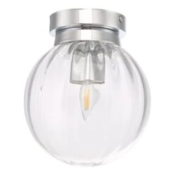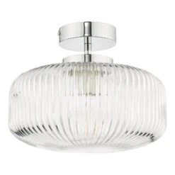 Riva Bathroom Semi Flush Ceiling Light Ribbed Glass Polished Chrome IP44