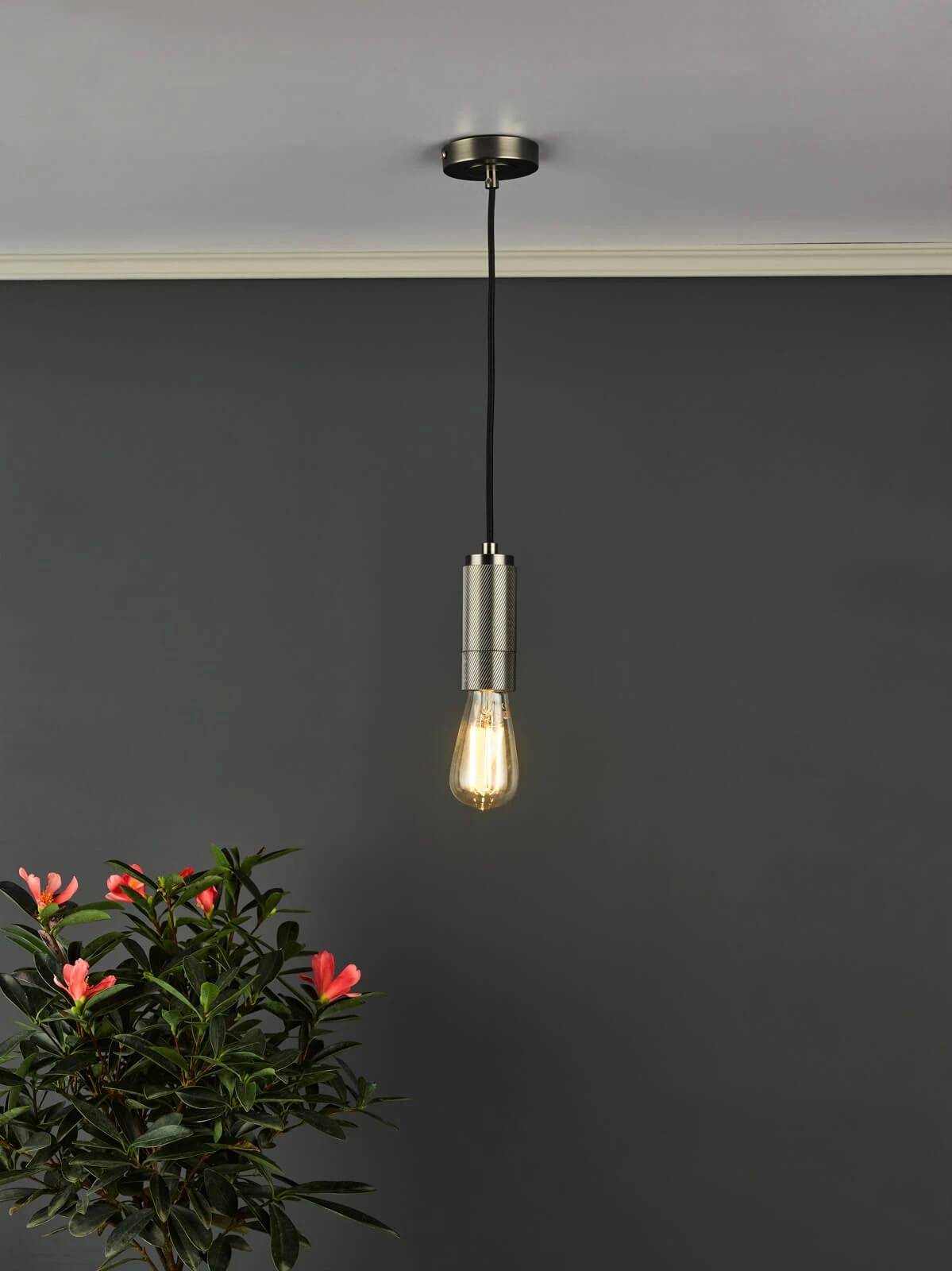 The Single pendant in antique chrome is a perfect example of the refined industrial style, inspired by industrial lighting using a rich pallet of materials and finishes. Featuring a wonderfully heavy machined lamp holder with a contemporary single knurling and an antique chrome finish. It can be finished with a glass shade from our easy fit range or simply used to great effect with our vintage lamps.