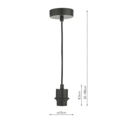 A suspension light in satin black finish with a black fabric cable. Maximum shade weight 2.2kg. Light bulb sold separately. Height adjustable on installation.
