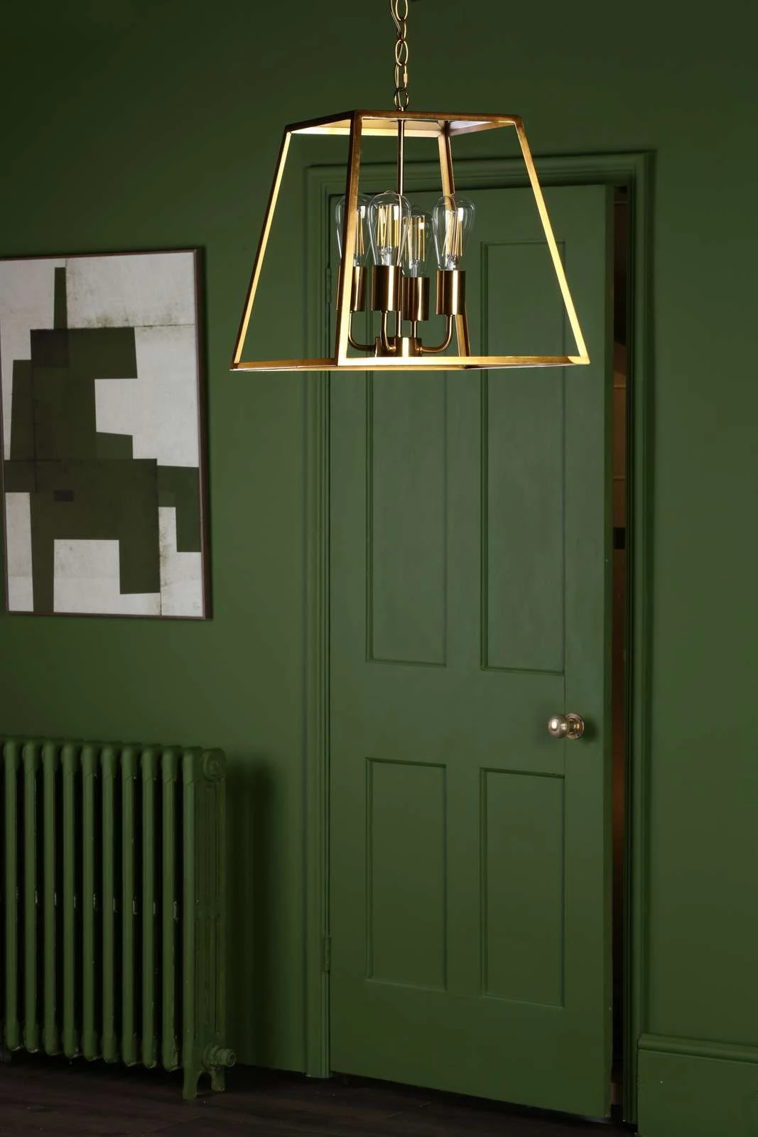 The Academy 4lt Lantern is an elegantly tapered square lantern-style pendant in a natural brass finish (no glass). Including a mirrored plate in the top to create a floating illusion, this fitting would add a unique touch to any contemporary décor. Perfectly suited for grand hallways, contemporary kitchens or minimalist bedrooms.