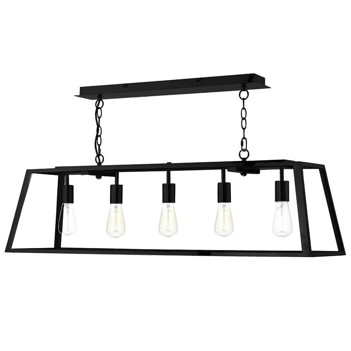 The ACADEMY 5lt bar pendant has a matt black ceiling plate and frame with clear glass panels. Perfect for use over kitchen islands or dining room tables and looks especially good when used in conjunction with vintage style lamps, available to buy separately.