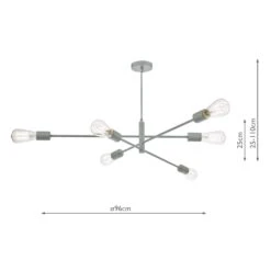 With a diameter of almost 1 metre and adjustable from 25 to 120cm in height, the Alana six-light pendant can make a strong statement in rooms with both low and high ceilings. Finished in matt grey for an authentic industrial look. Pictured with our Rustika lamps (sold separately), the look of this pendant can be changed by using different lamps such as oversized globes. The cloth-covered cable can be adjusted on installation.