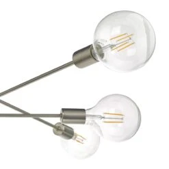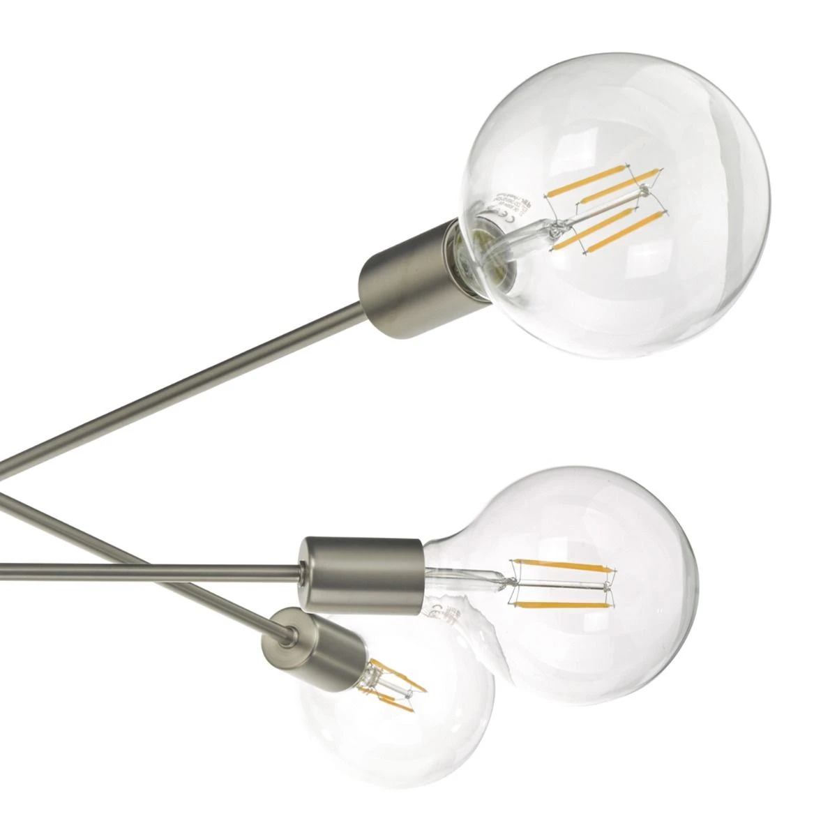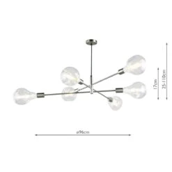 With a diameter of almost 1 metre and adjustable from 25-120cm in height, the ALANA six-light pendant can make a strong statement in rooms with both low and high ceilings. Pictured with our RUSTIKA lamps (sold separately), the look of this pendant can be changed by using different lamps such as oversized globes. Finished in satin chrome for an authentic industrial look; the black cloth-covered cable can be adjusted on installation.
