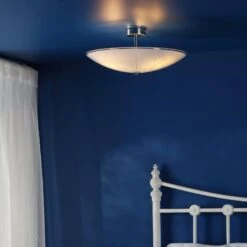 The ALBANY 3lt Semi Flush fitting has a frosted glass shade with decorative ‘star-shaped’ cut detail and polished chrome centre finial.