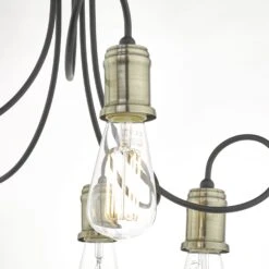 The Alzbet pendant features flowing black arms with antique finished lamp holders that create the striking illusion of floating.
