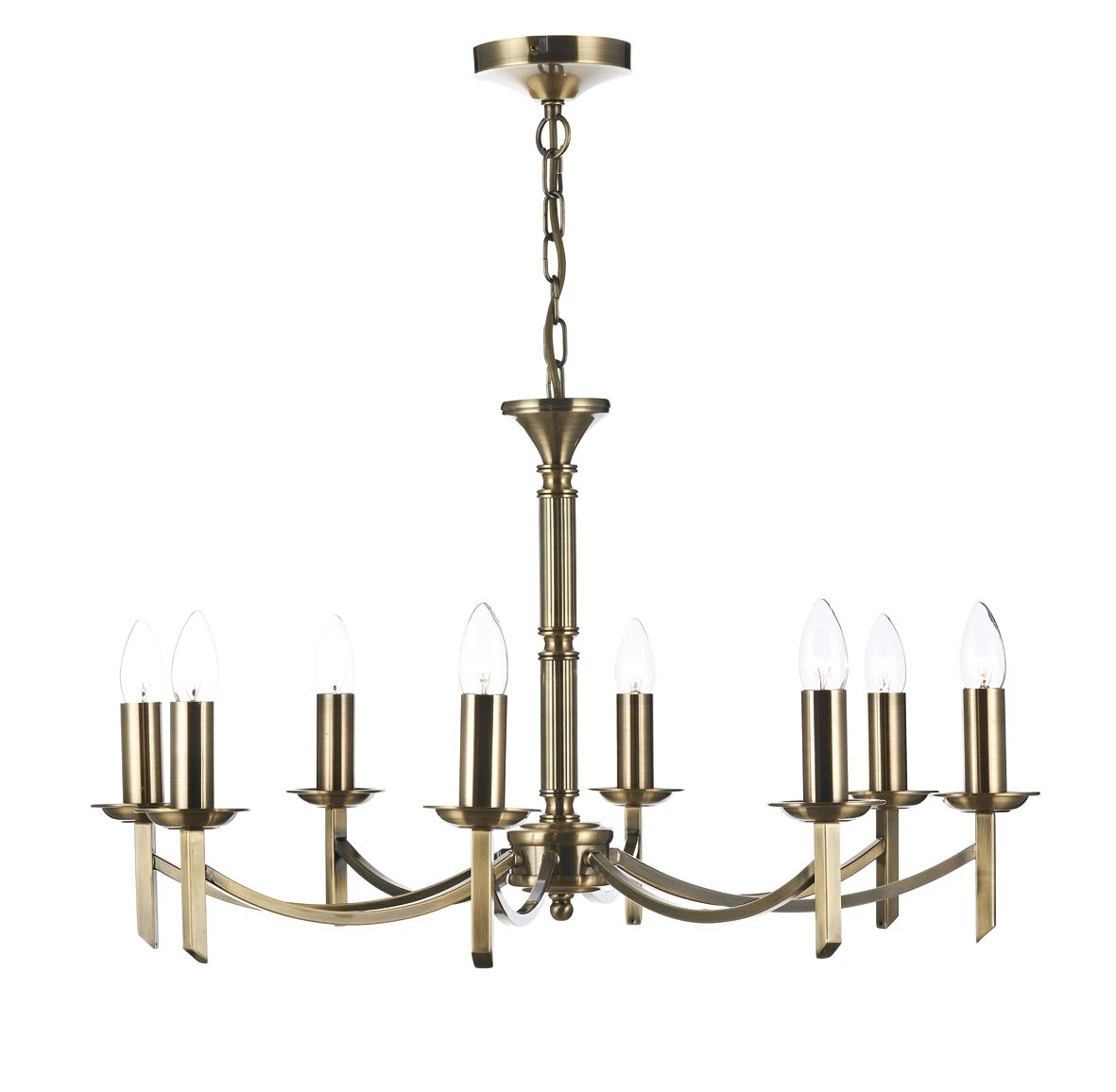 The AMBASSADOR 8lt Pendant is finished in antique brass and has a feature ribbed central column.