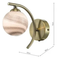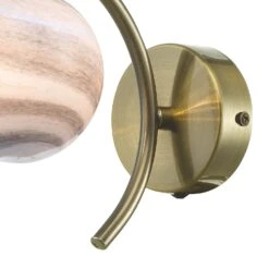 The ATIYA wall lamp in antique brass and planet art glass. Featuring a pull cord switch to enable switching at the point of light for ease of use and installation.