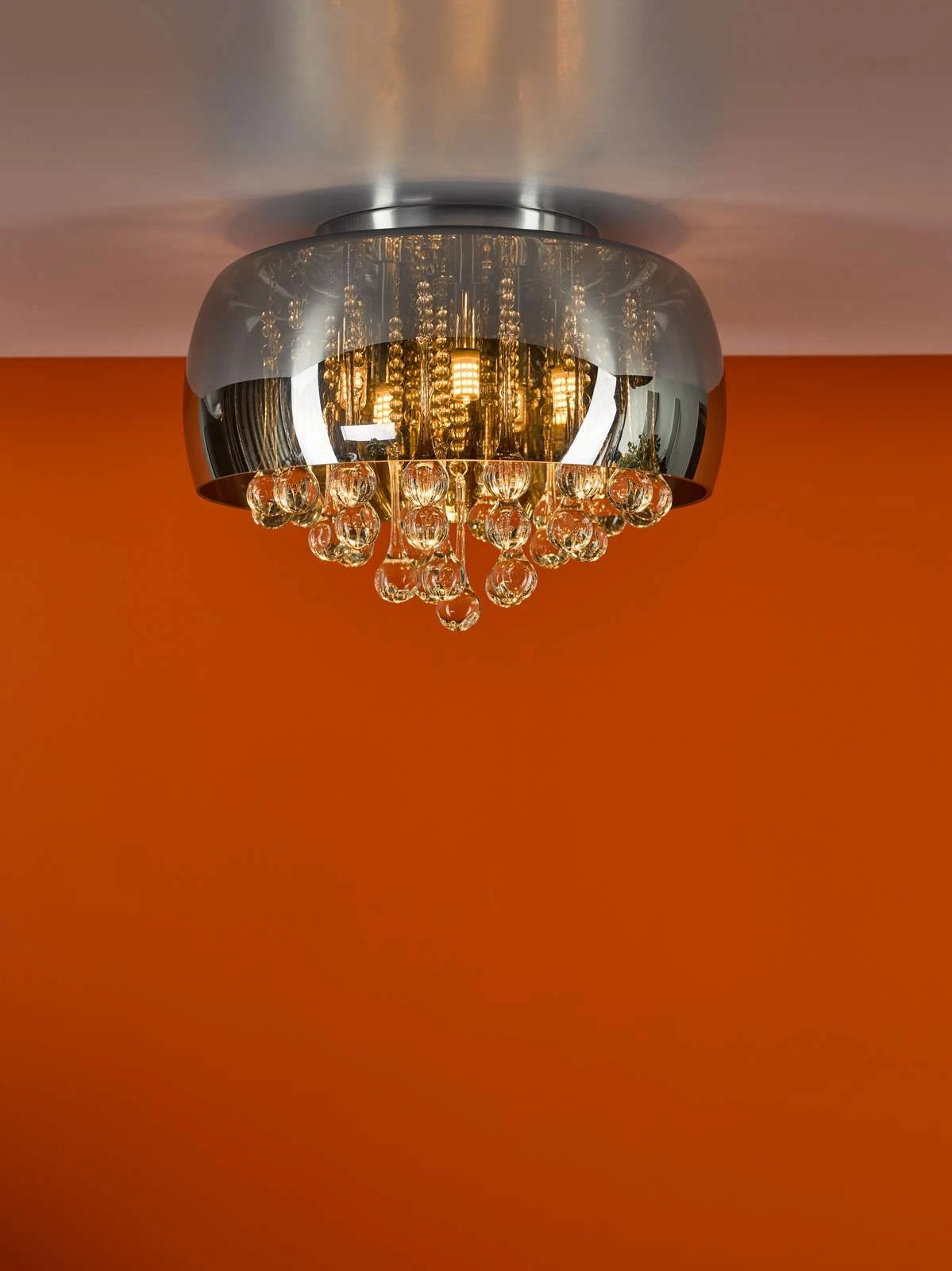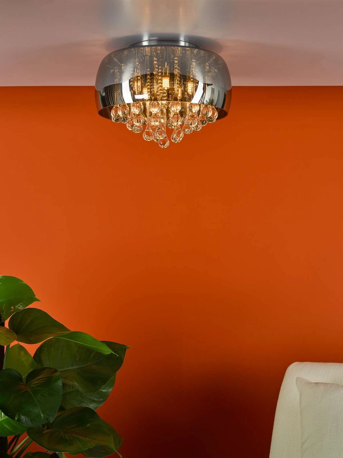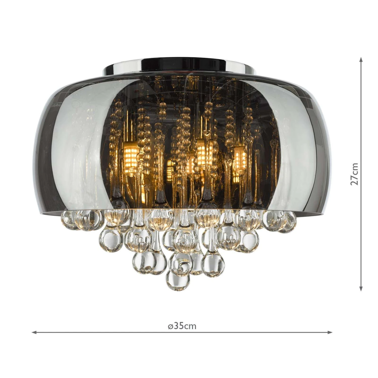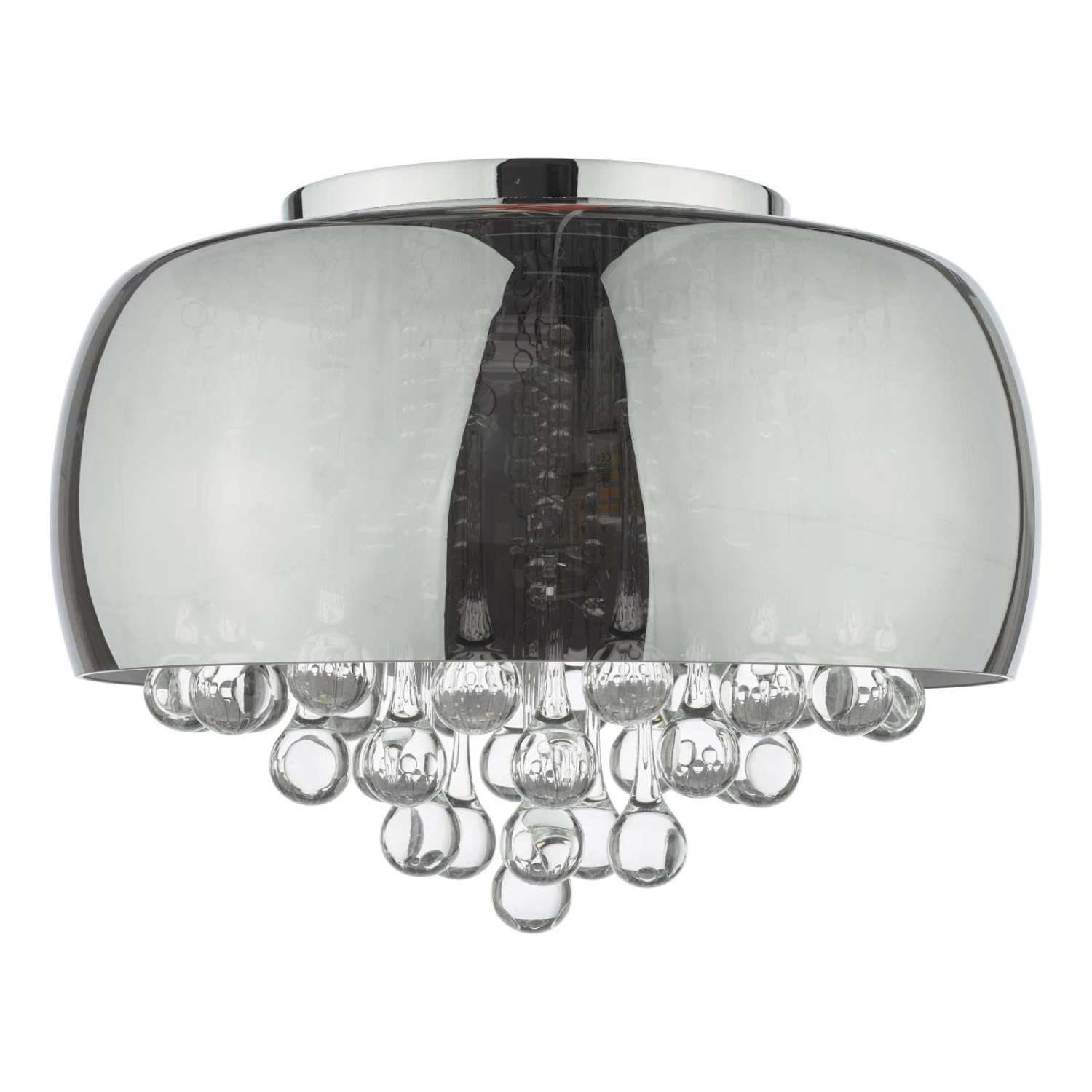 The Aviel 5 light flush ceiling light features a smoked glass shade that encases multiple tiers of clear glass droppers. When lit, the inner glass beads are revealed as the light reflects around the inside of the shade, and this fitting looks just as spectacular when off. Perfect for adding a luxurious look to your bedroom, or lounge.