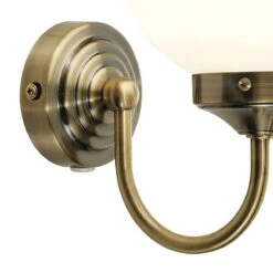 The Barclay bathroom wall light is classically styled featuring a white opal glass shade and stepped metal work in antique brass. Fitted with a pull cord switch for ease of use.