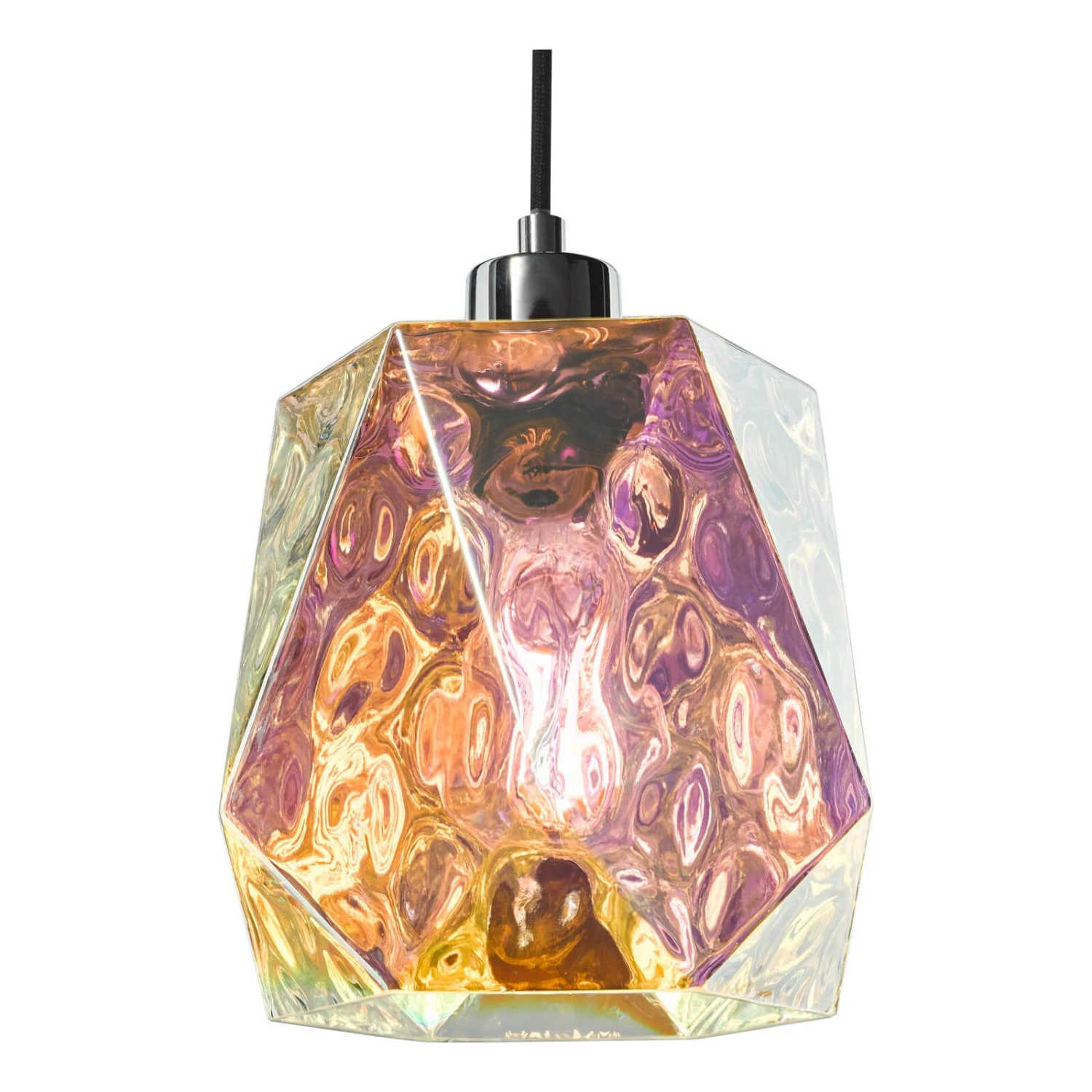 The Baxley easy-fit Pendant Light is a quick and easy way to change the look of a room without an electrician. Its irridised glass scatters light in a dazzling display, reflecting different hues from every angle. Fitting any standard E27 (ES) suspension, the Baxley pendant comes supplied with a metal reducer ring, so you can use your existing B22 or SES ceiling rose and flex. Ideal for creating an enchanting focal point, this pendant light works beautifully on its own or grouped together using our range of We recommend using LED filament lamps from our range of decorative suspensions and cluster fittings.