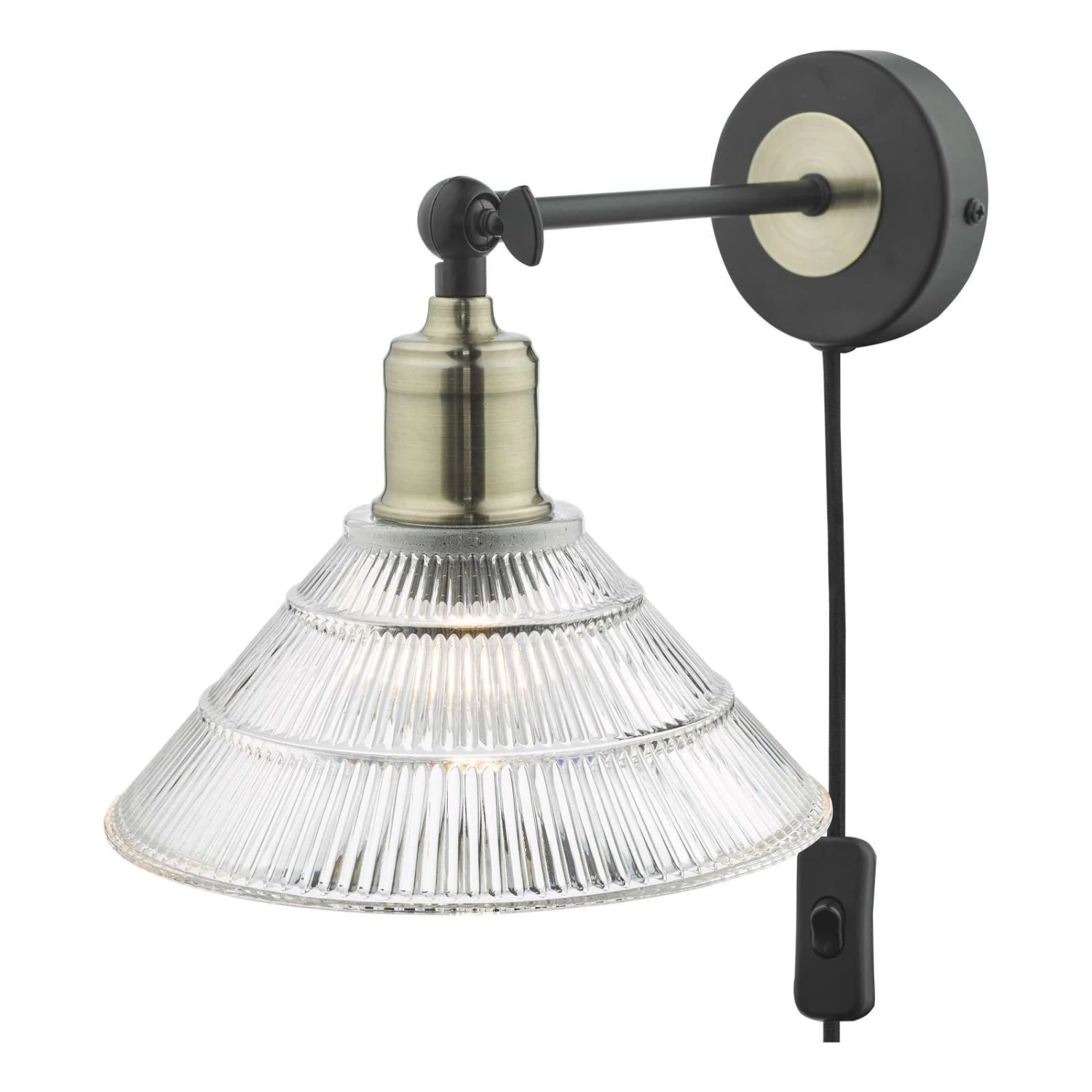 The Boyd plug in wall light with prismatic shade and antique brass detail. Is a great looking soft industrial wall light