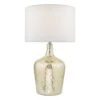The BYBLISS Table Lamp has a satin chrome base with open metal work decoration and cream shade.