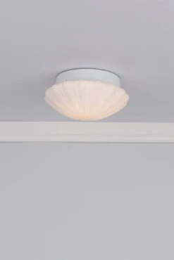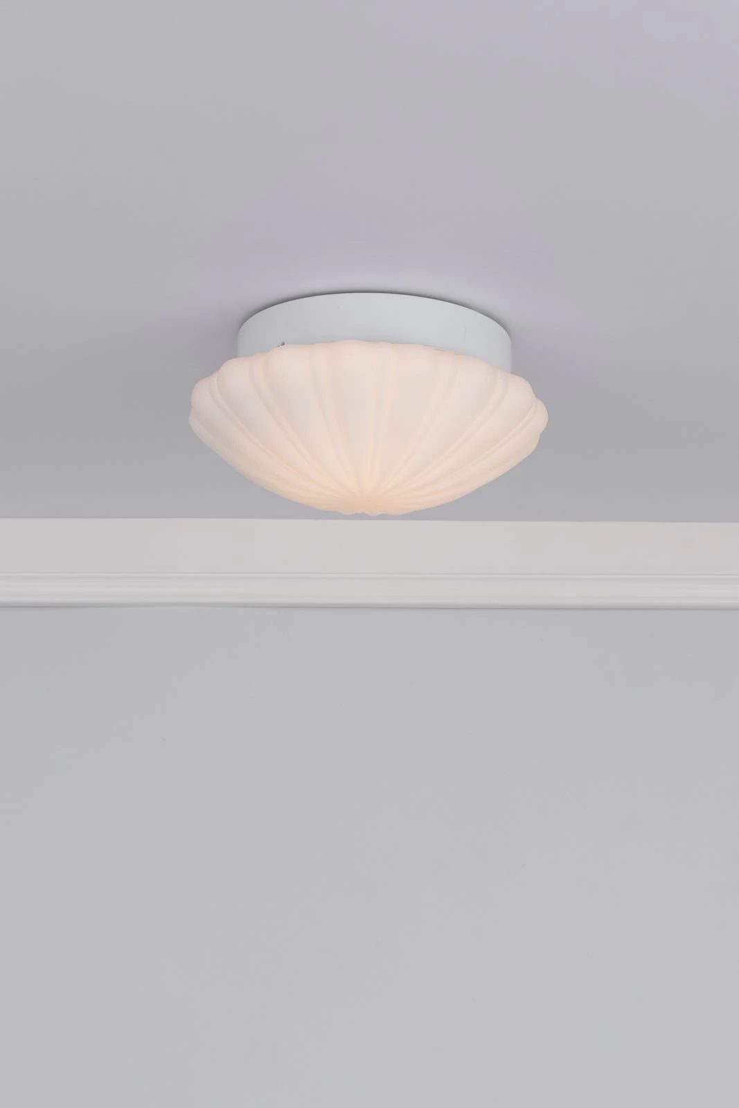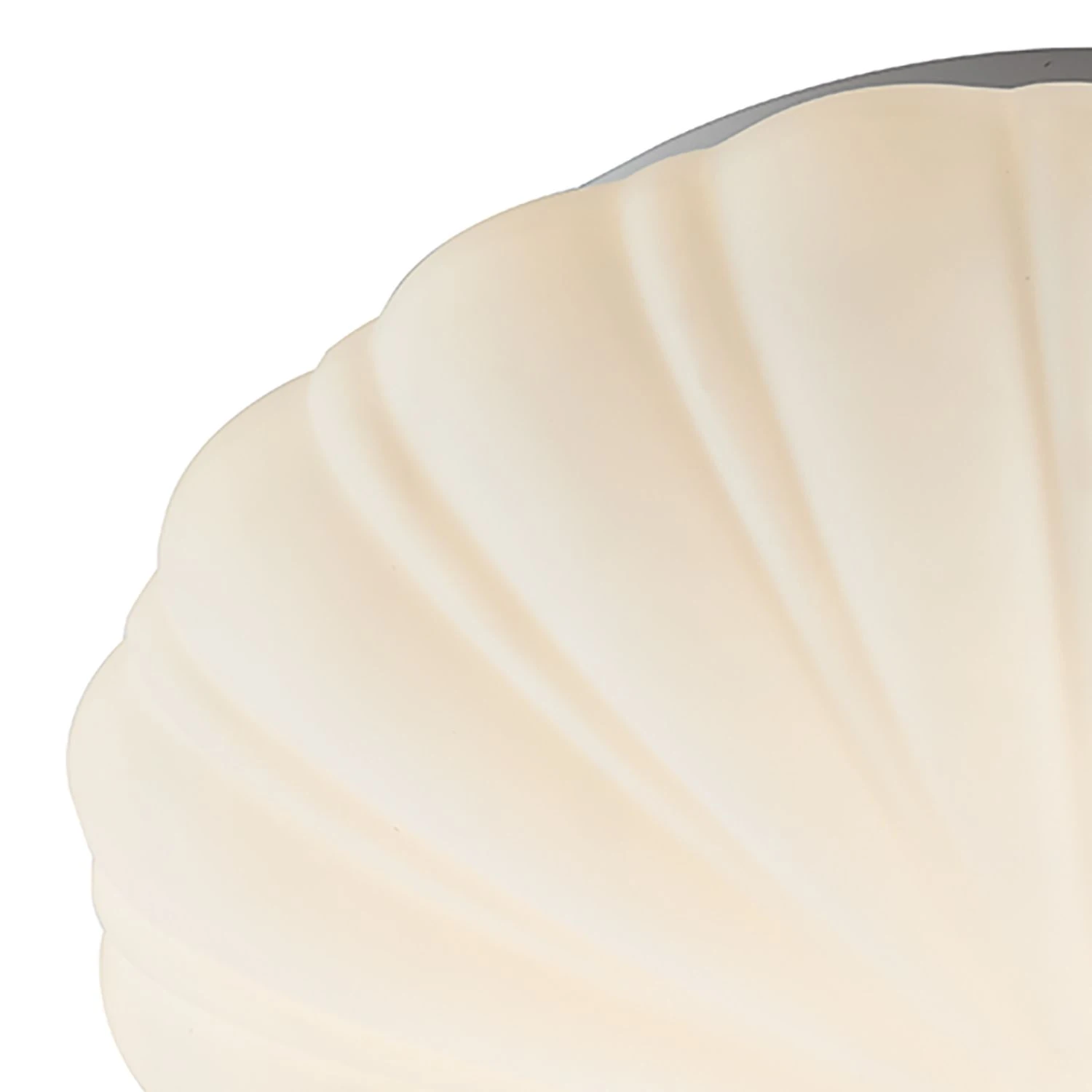 The pretty Café ceiling light has a neat shade, ridged like a scallop shell, in frosted, opal white glass. This timeless bathroom light is IP44 rated so is safe for use in bathroom zones 1 and 2 or anywhere water spray is a risk.