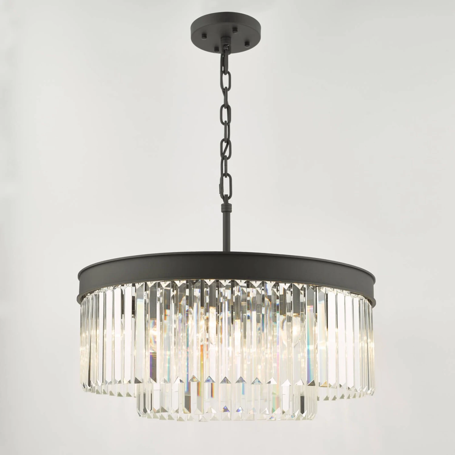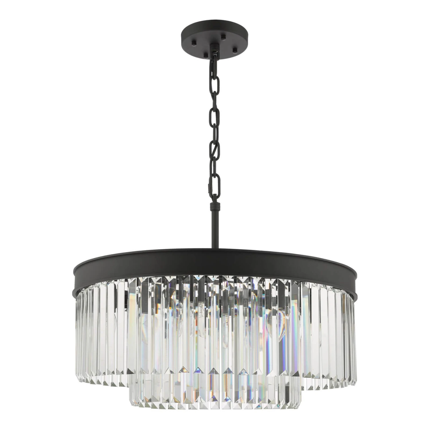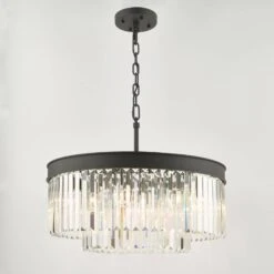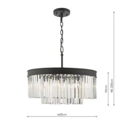 The Celeus 6 light 60cm chandelier is a stunning statement chandelier combining clear faceted crystal with a contrasting textured anthracite finish. Our designers have concentrated on keeping this fitting looking elegant and sophisticated. Special attention was made to obscure the crystal fittings with the anthracite frame. The 60cm chandelier makes a perfect statement light in most living and dining rooms, especially where black accents such as Crittal doors are used.