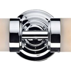 The CENTURY IP44 2lt Bathroom Wall Light has a ribbed polished chrome backplate and frosted glass shades.