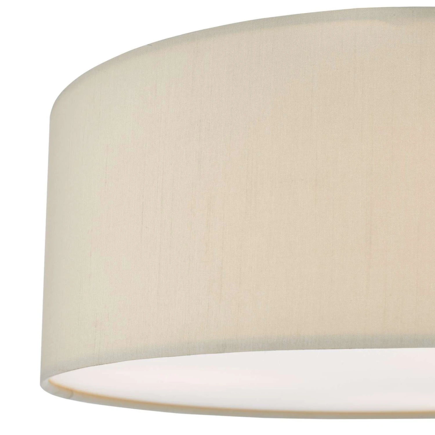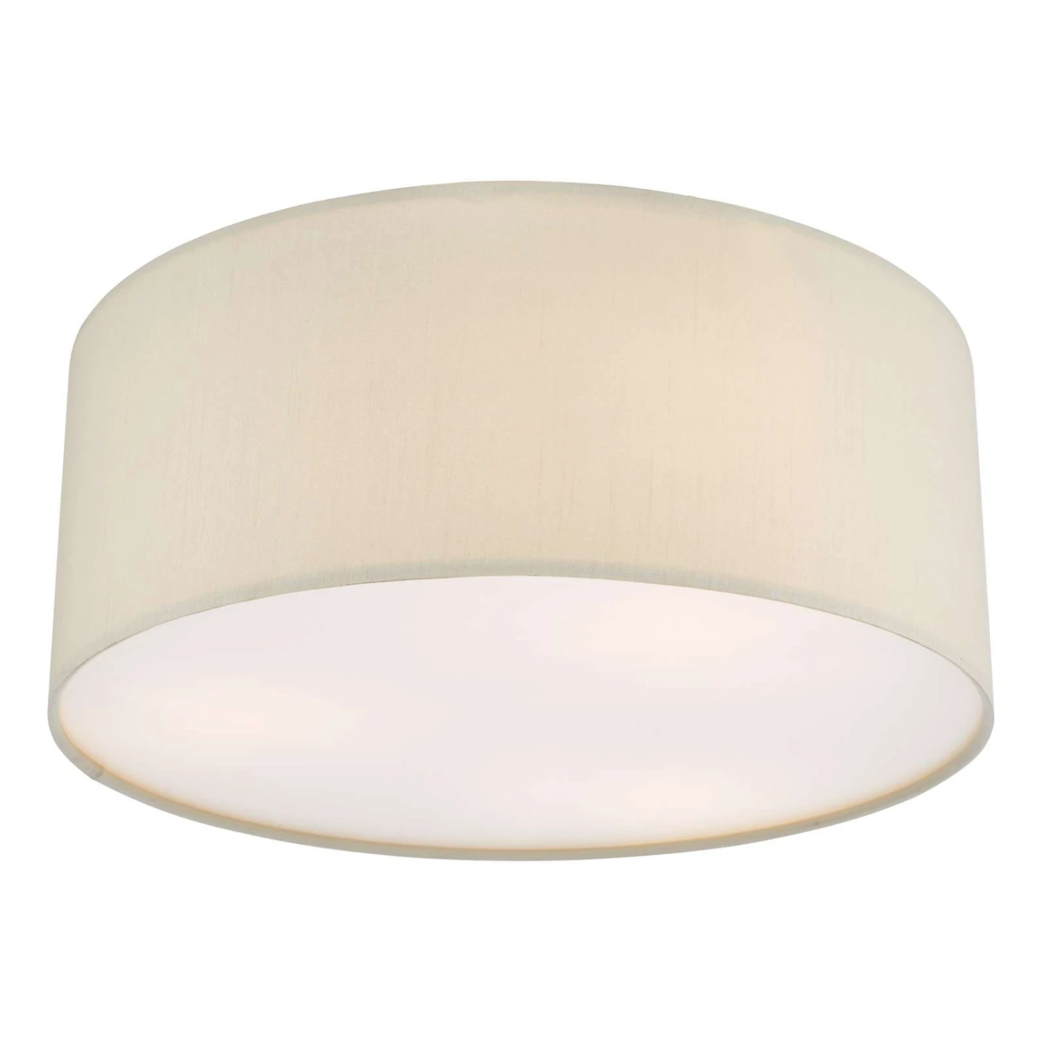 The minimalistic Cierro flush 3-light in Taupe features a round faux silk drum shade with a frosted acrylic diffuser that produces a lovely soft light when lit.