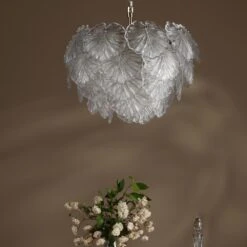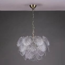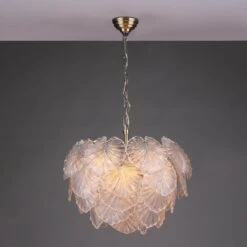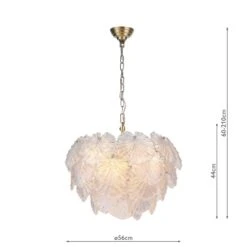 The Courtney 10 Light Pendant makes a stunning statement. Its antique brass frame embraces textured glass leaves that emit a warm, dappled glow. A substantial yet elegant fixture, the Courtney brings a touch of natural beauty to any space. Hang it low over a dining table or entryway to dramatic effect, or raise it high to illuminate a double-height room. Either way, its gorgeous detailing and quality craftsmanship are sure to impress. A sturdy antique brass chain and clear cable allow for height adjustment during installation to suit your space. For a leafy, luxe lighting scheme that elevates your decor, you can’t go wrong with the Courtney pendant from dar Lighting.
