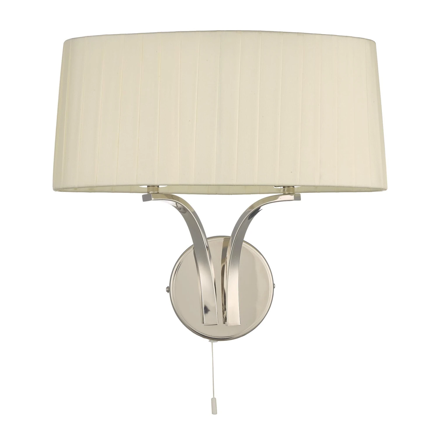 The traditional Cristin Wall Light with a satin nickel frame complete with an ivory ribbon shade.