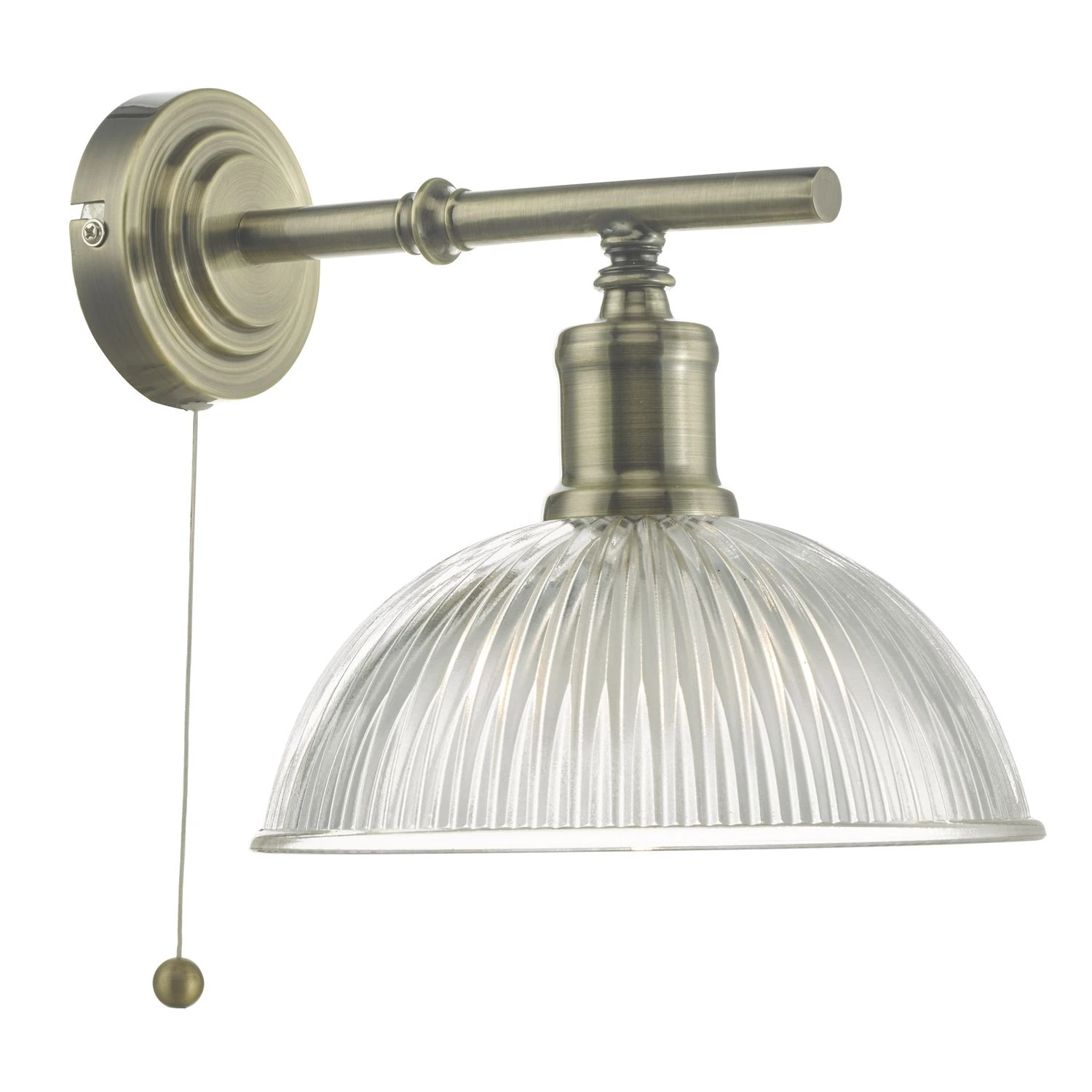 The mid-century inspired DARA features ribbed glass and detailed metalwork in an antique brass finish. This charming wall light directs light downwards making it ideal for illuminating hallways and bedrooms, as well as highlighting key features around the rest of your home.
