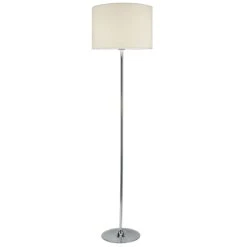 The Delta floor lamp has an elegant retro inspired tear organic base in polished chrome. Comes complete with a co-ordinating ivory cotton drum shade. Fitted with an cable mounted foot switch for ease of use.