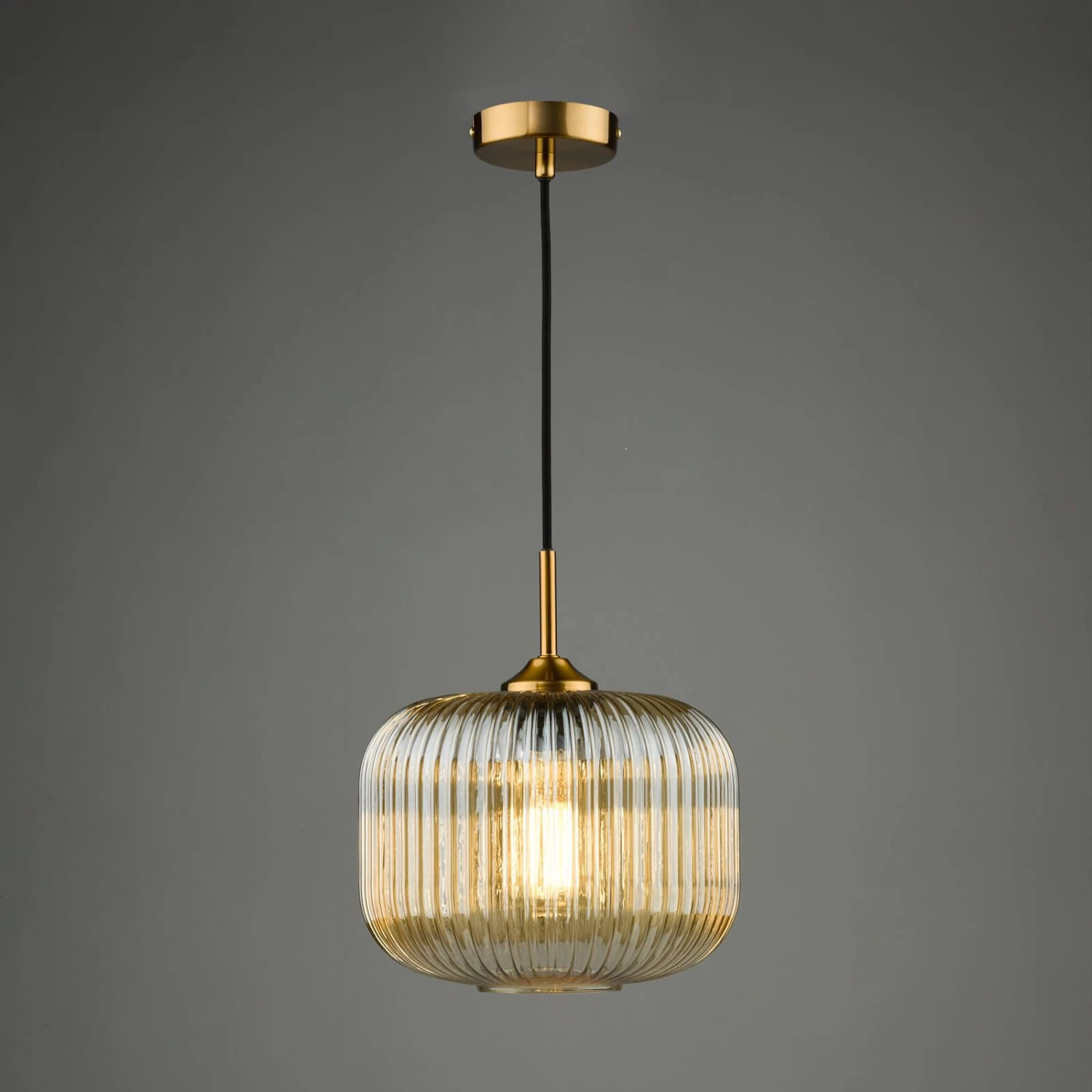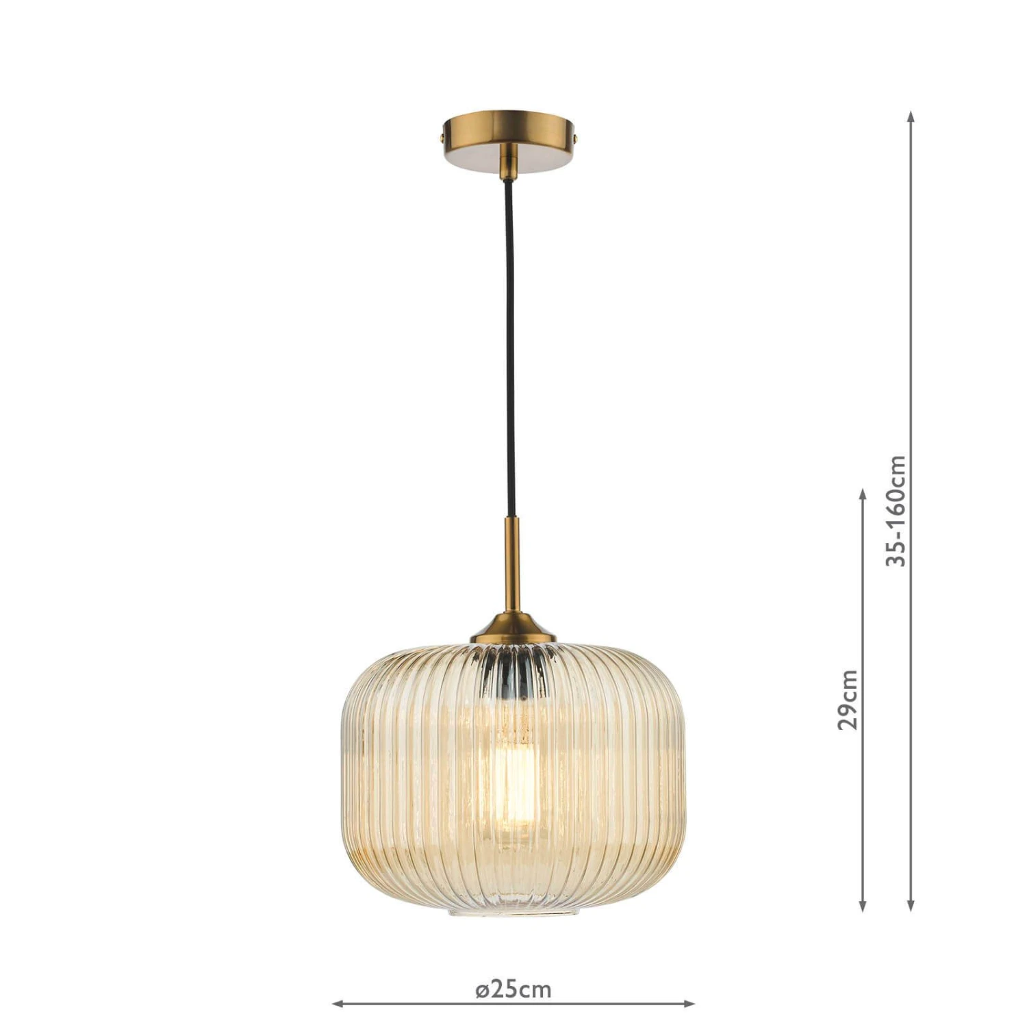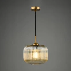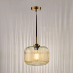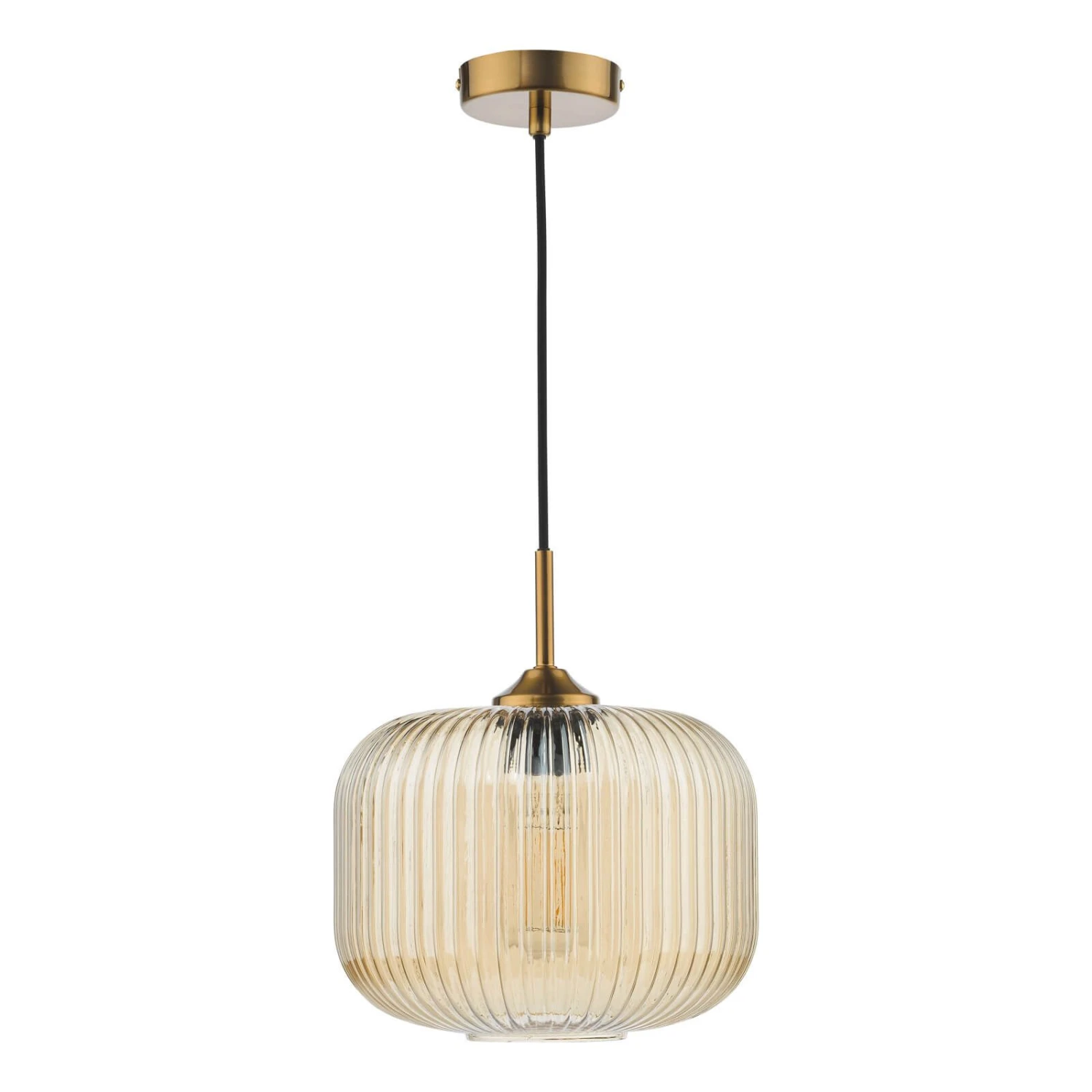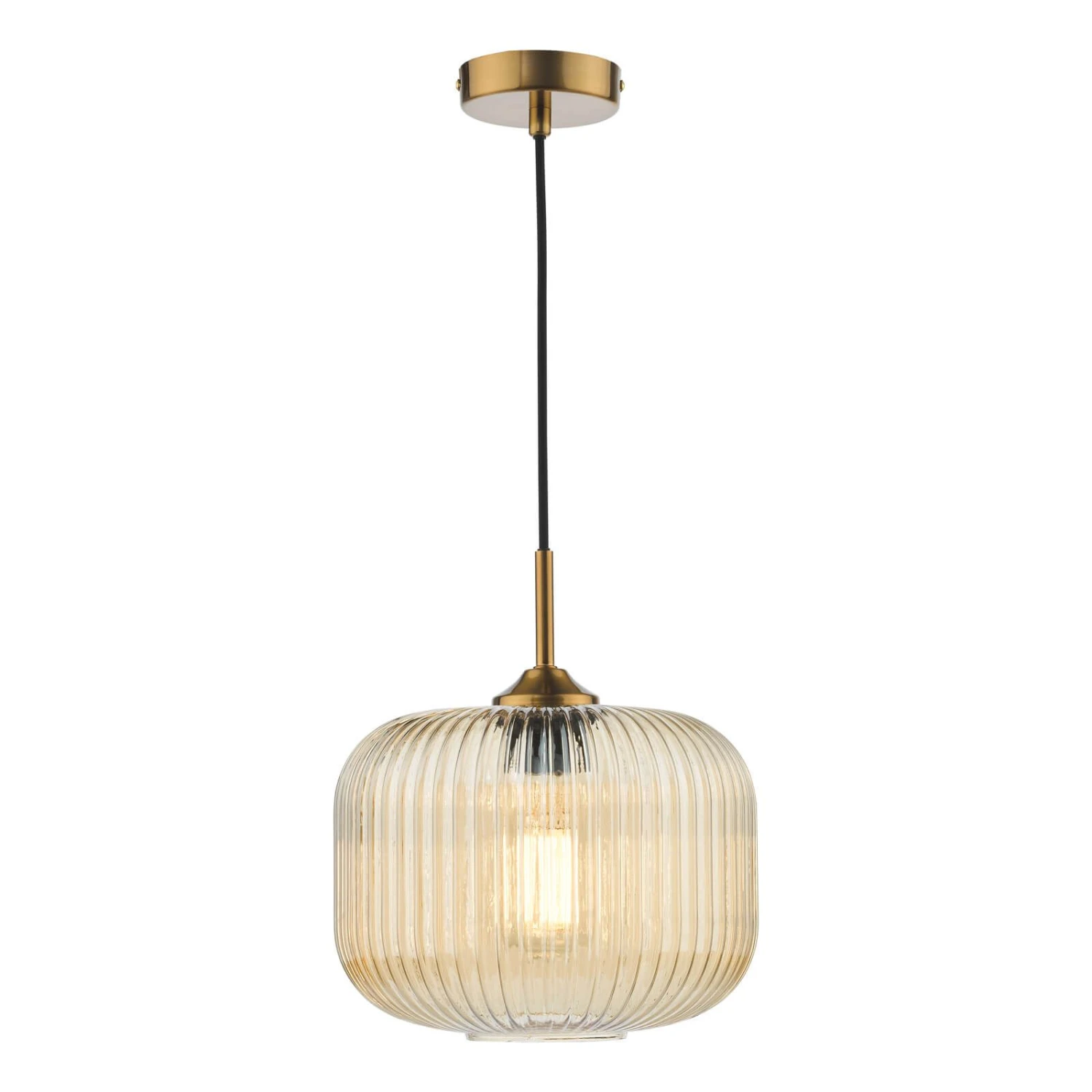 The Demarius Amber Glass and Natural Brass Pendant from dar lighting offers a lovely amber glow. Featuring ribbed glass with natural brass metalwork and black braided cable, it offers adjustable height installation for directed lighting where you need it. Whether you fancy mood lighting for a dinner party or want accent lighting for your hallway or bedroom, the Demarius glass pendant delivers subtly sophisticated illumination with ease.