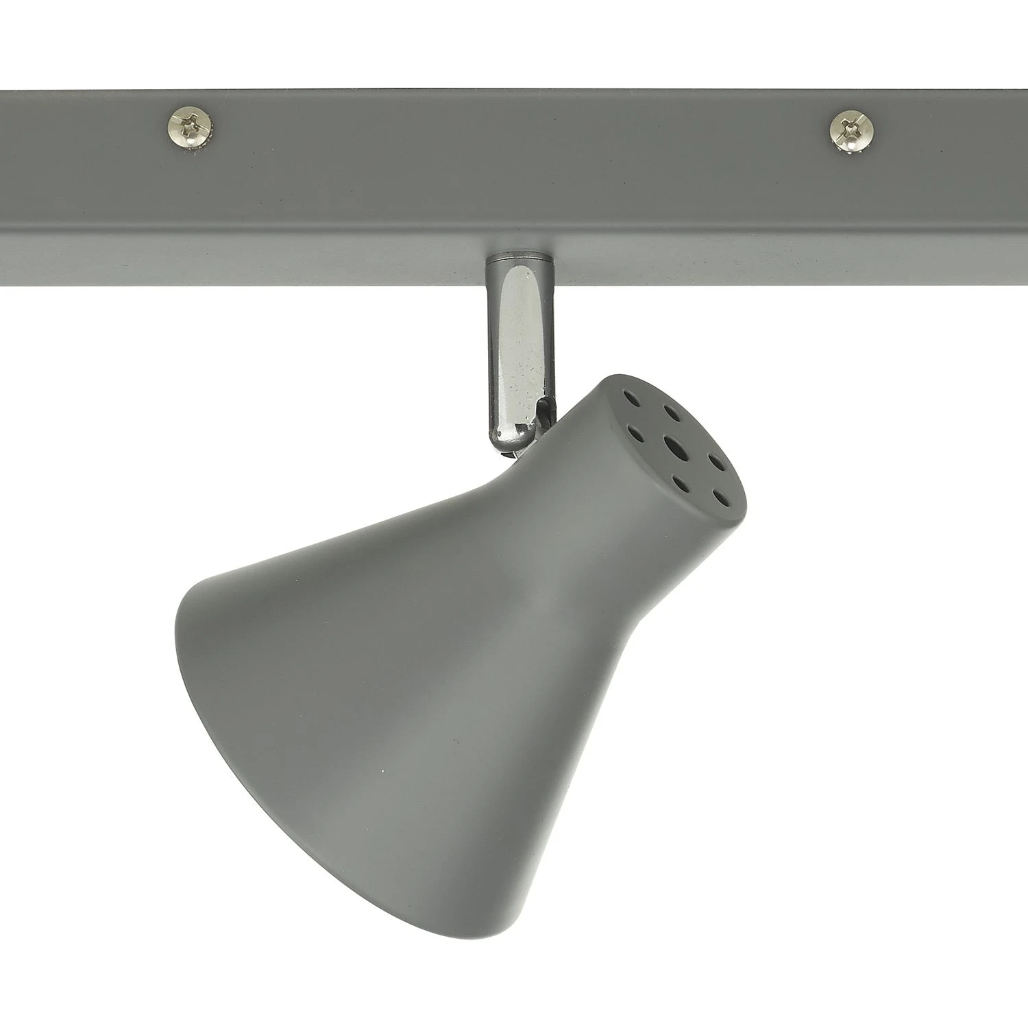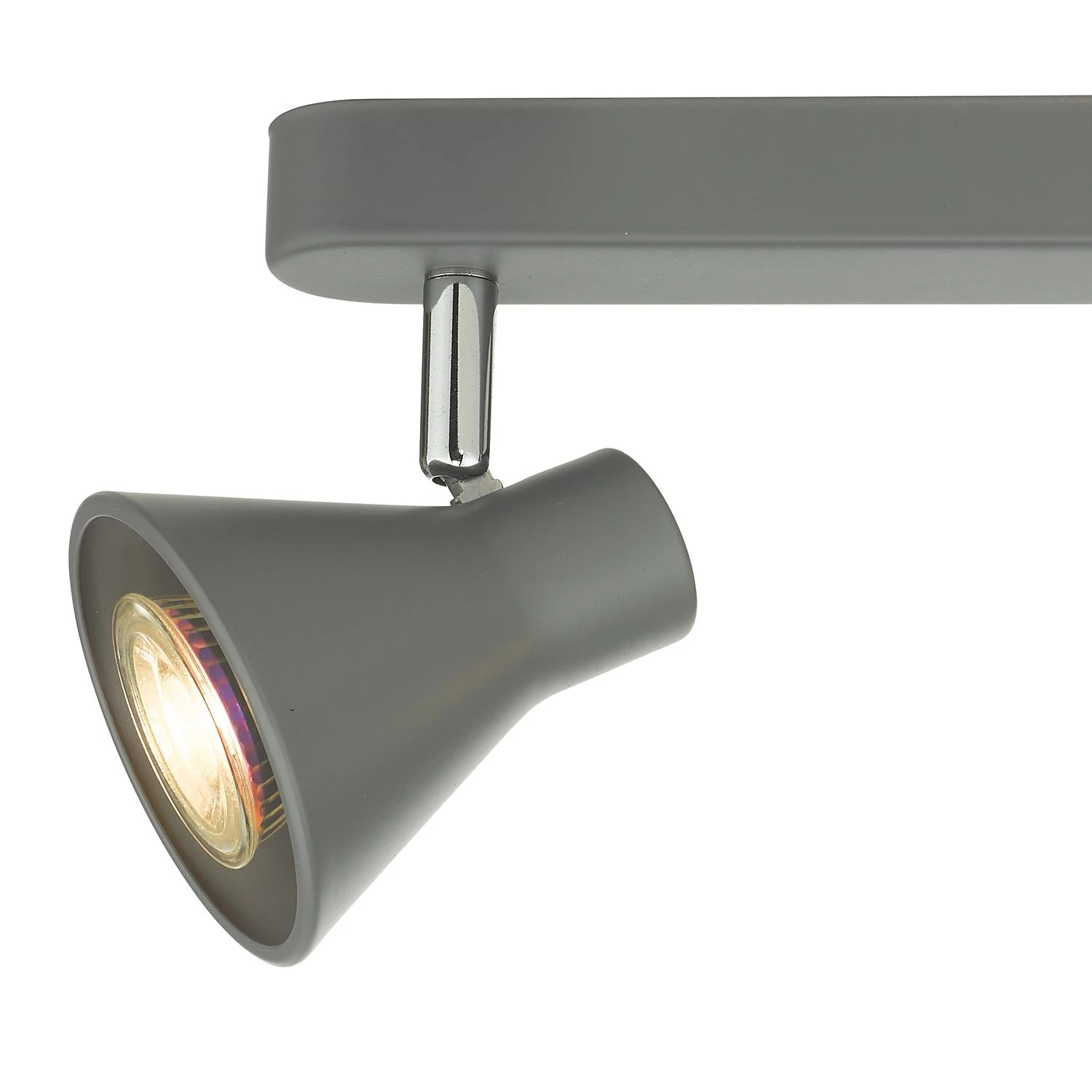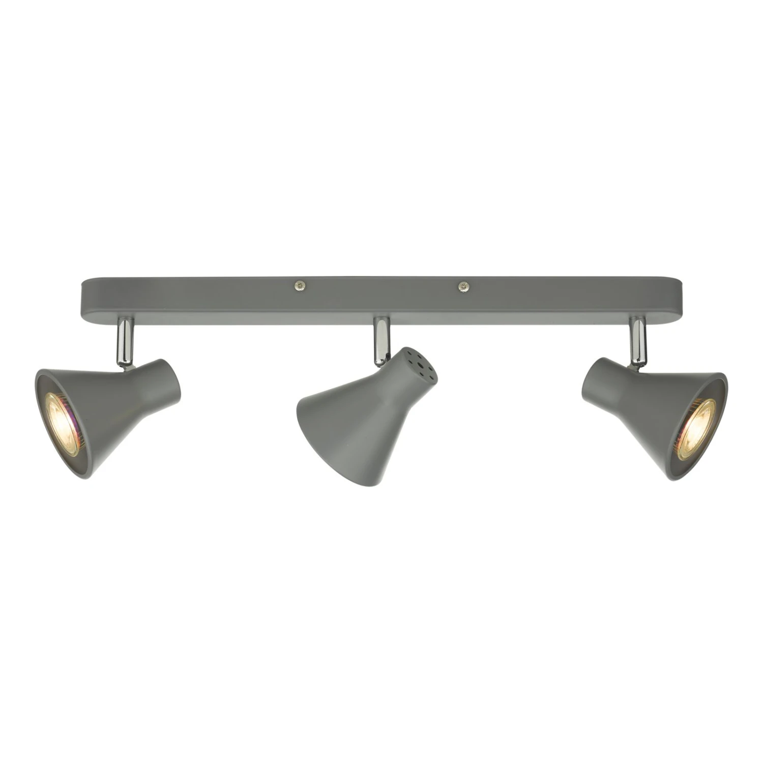 The DIZA 3 light Bar Spotlight Ceiling Light is finished in matt mid grey with polished chrome detail. Each head is fully adjustable to enable the light to be directed to just where it is required.