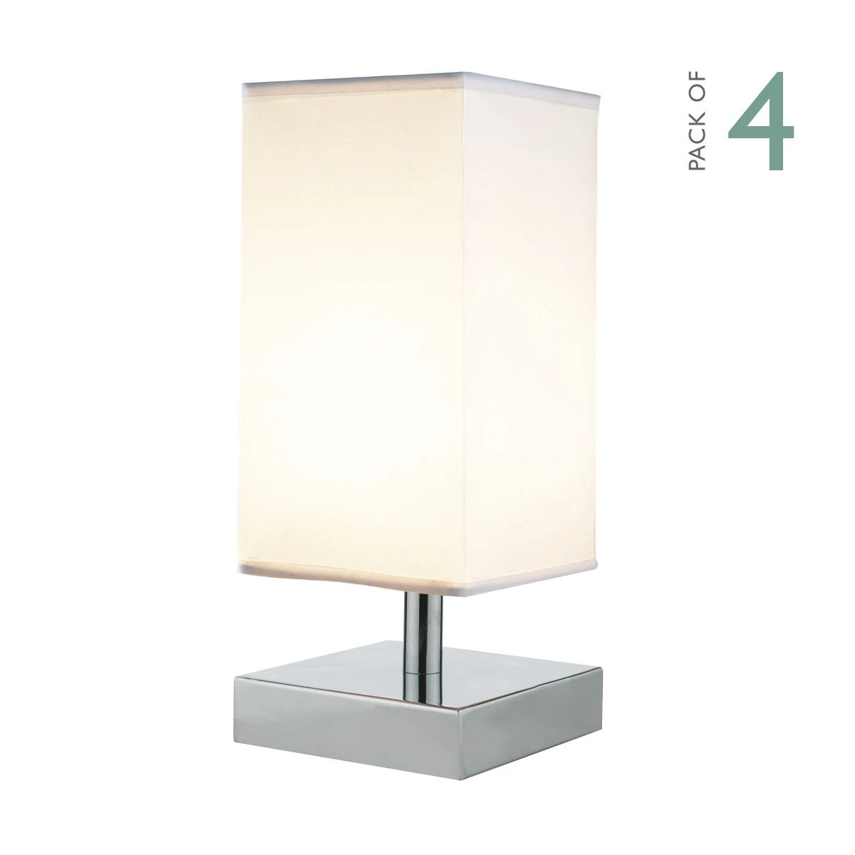 The Drayton touch table tamp has a square polished chrome base complementing a tall square shade in white cotton. A lovely lamp for introducing an additional soft light to a living room or bedroom.