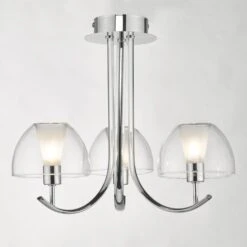 The DUANA3lt semi flush features sleek, curved arms in a polished chrome finish. The clear glass shades create a beautiful soft light which would look perfect above a dining table or in a master bedroom.