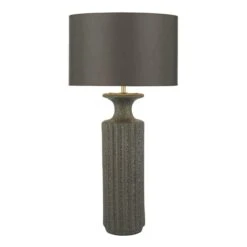 The Dugan Ceramic Table Lamp has a slender retro-inspired design with an extremely tactile volcanic lava glaze.