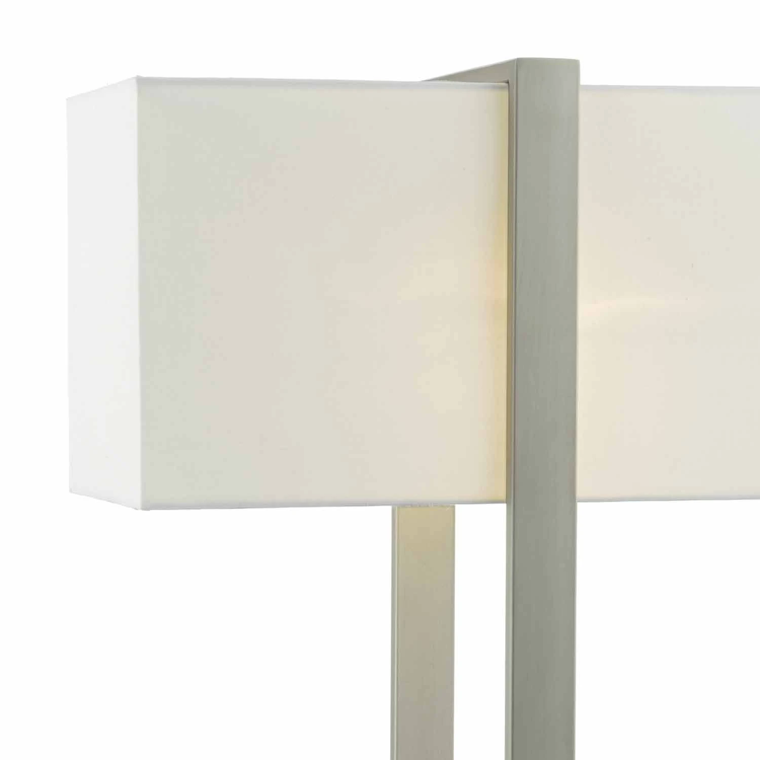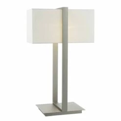 The EDUARDO large table lamp has an architectural style finished in beautiful antique nickel and completed with an ivory cotton shade. Operated by an inline rocker switch. Great for hotel interiors or modern homes.