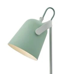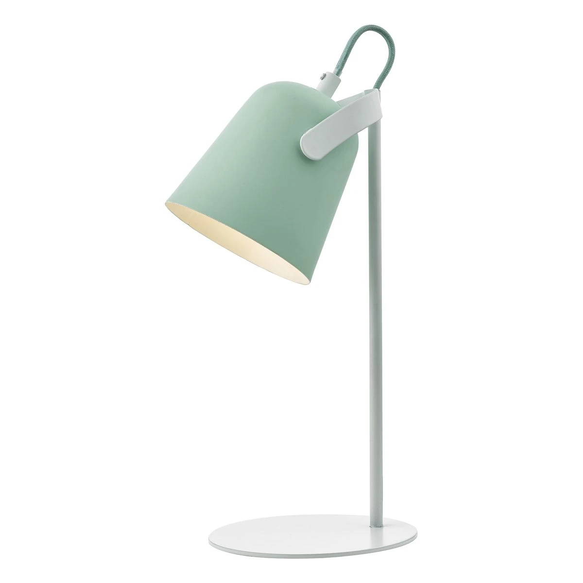 EFFIE – compact task lamp with an adjustable head in matt white with a pale ice green shade and luxury braided cable this versatile light adds a splash of colour and style to any desk.