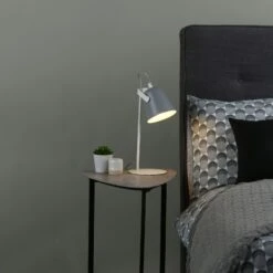 EFFIE – compact task lamp with an adjustable head in matt white with a pale grey shade and luxury braided cable this versatile light adds a splash of colour and Nordic style to any desk.
