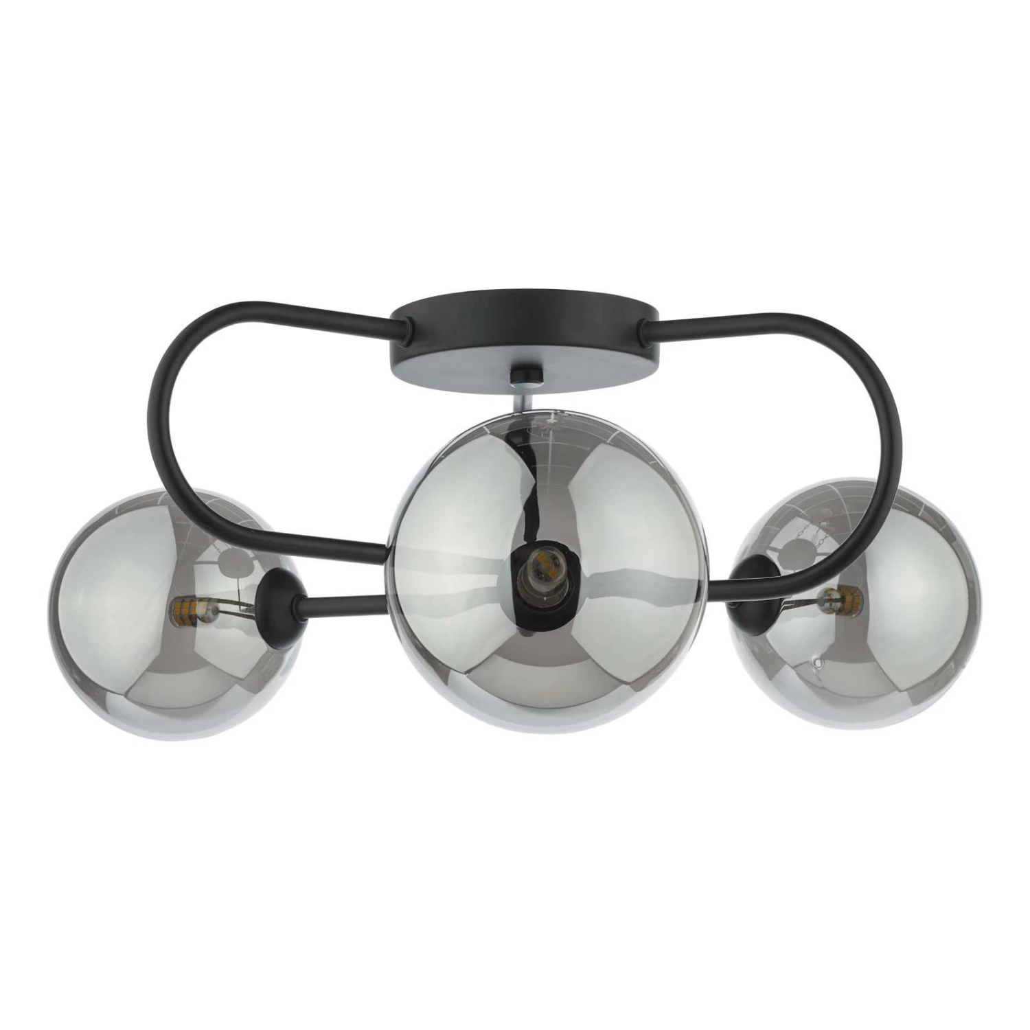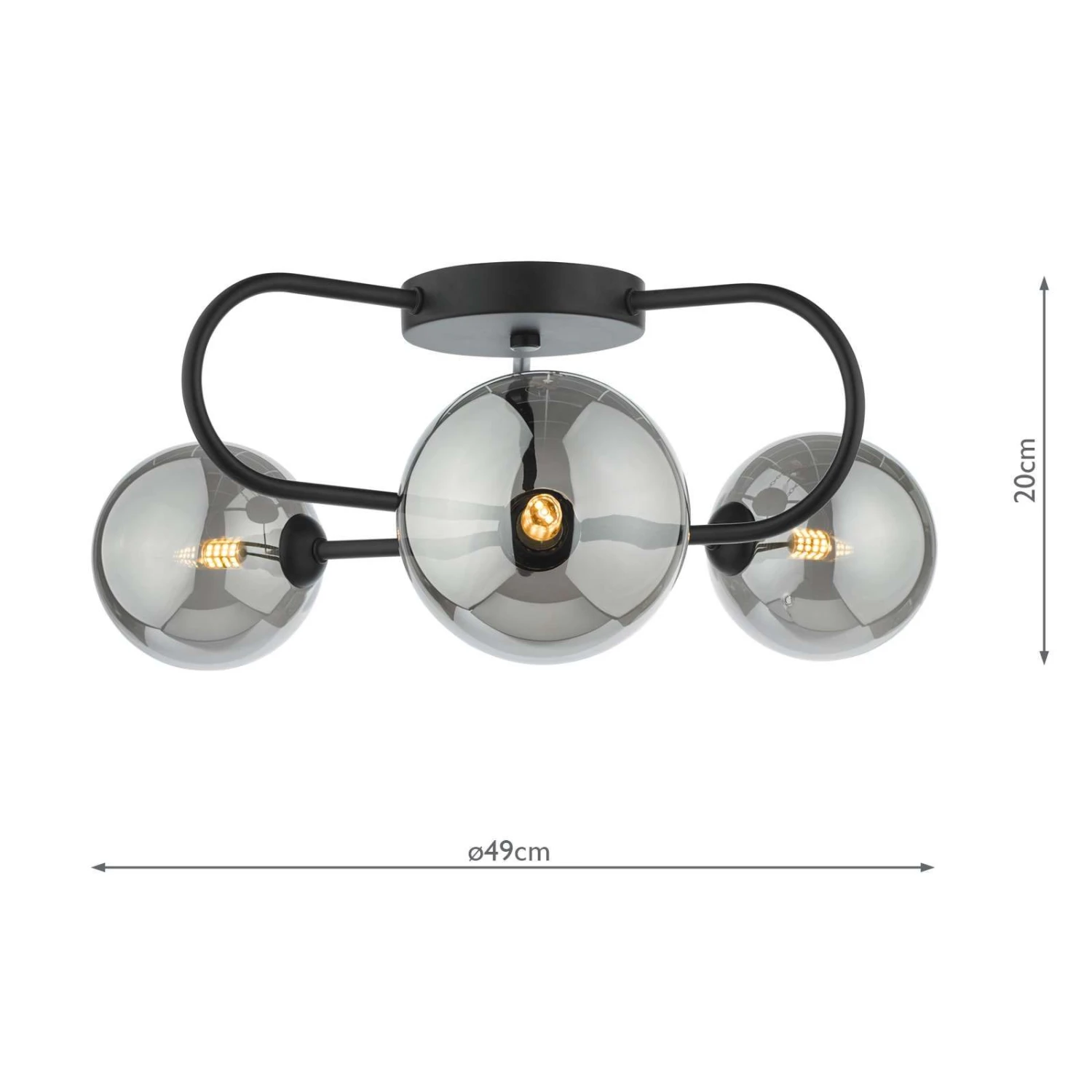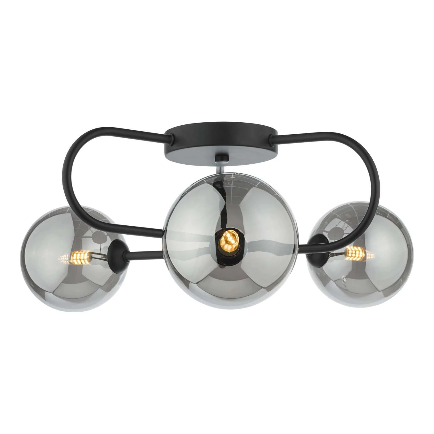 The Eisse semi-flush ceiling light in matt black with smoked glass follows the current geometric minimalist design trend with a large radius arms leading to a beautiful mirror smoked glass. The Eisse semi-flush ceiling light is part of a range including a matching wall light and table lamp.