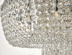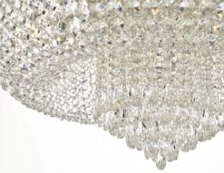 The Eitan 12 light Flush EIT4808 a flush, polished chrome fitting with hundreds of hanging crystal pieces adding glamour even when ceiling height is restricted. Available in two sizes.