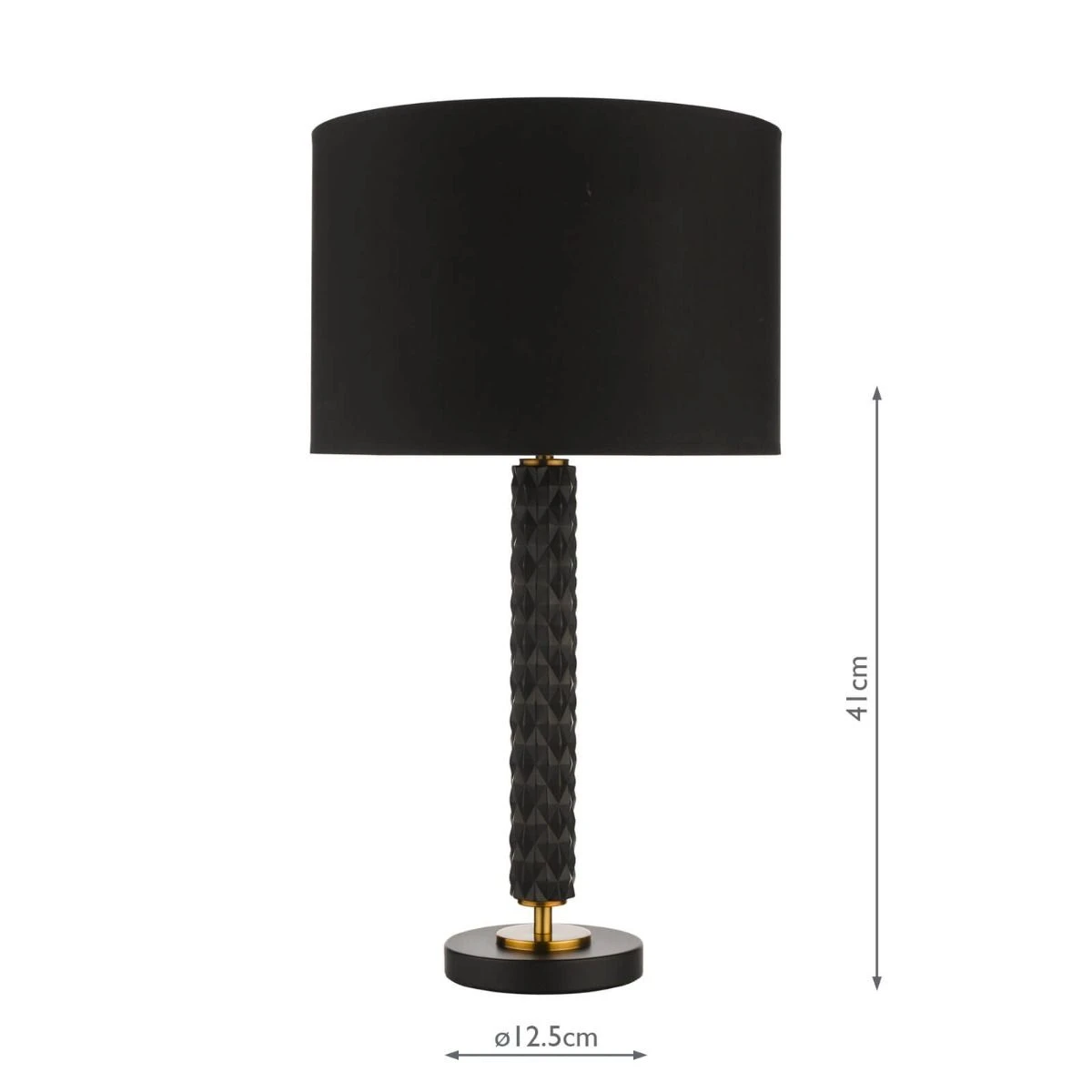 Sold here with the Kelso 28cm black cotton shade. Also available as a base-only table lamp for you to use your own shade or choose from our selection of fine shades.