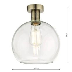 The Emerson flush ceiling light is a perfect example of the refined industrial style, inspired by industrial lighting using a rich pallet of materials and finishes. Featuring a wonderfully heavy machined lamp holder with an aged brass finish. Finished with a clear glass globe shade.