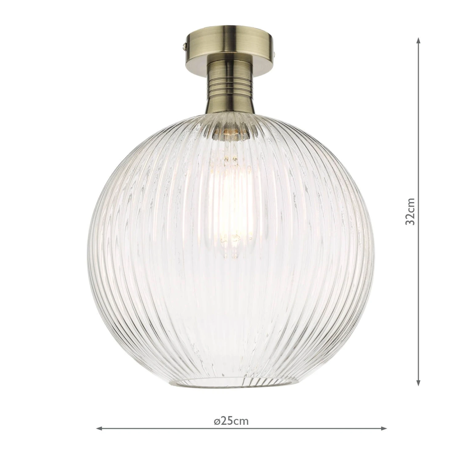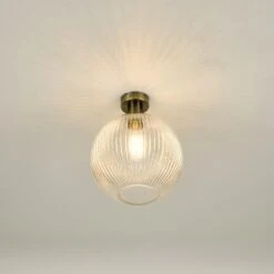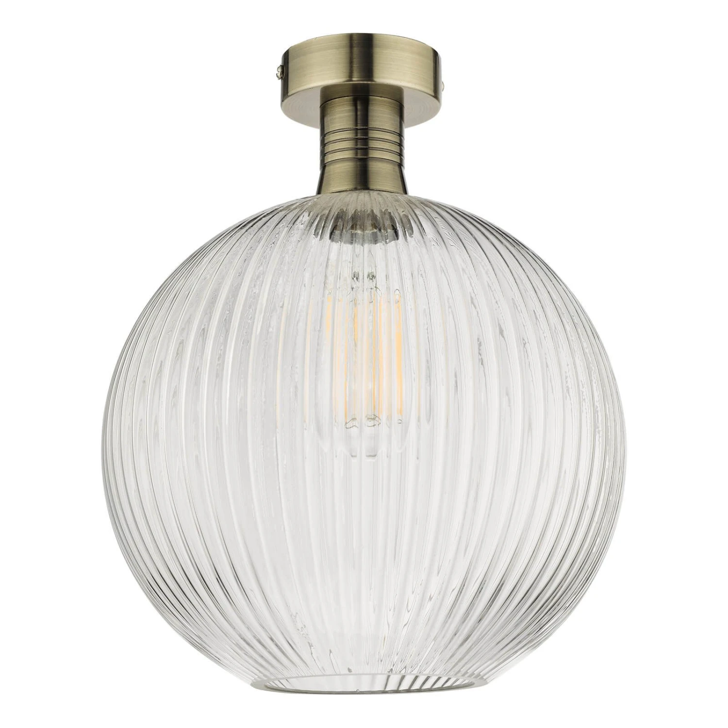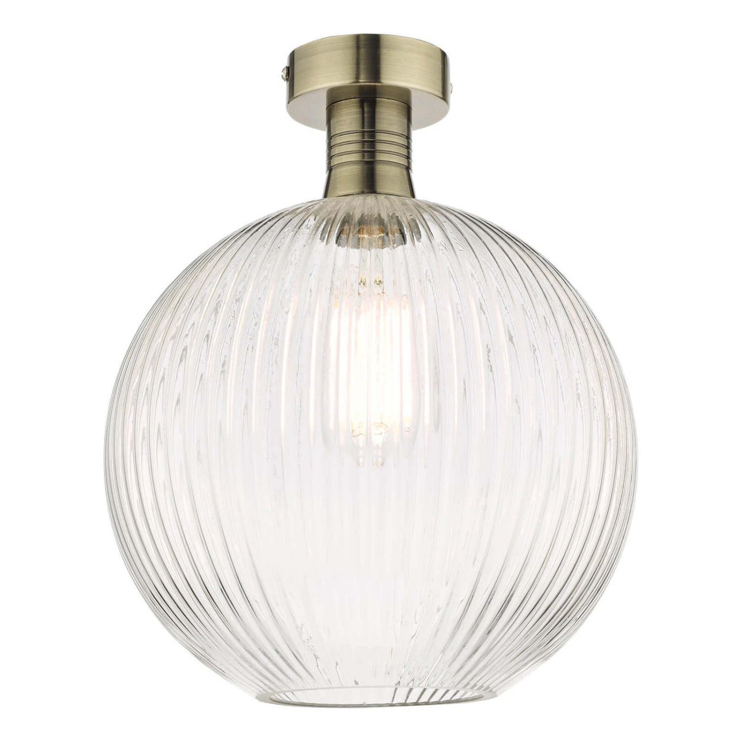 The Emerson flush ceiling light is a perfect example of the refined industrial style, inspired by industrial lighting using a rich pallet of materials and finishes. Featuring a wonderfully heavy machined lamp holder with an aged brass finish. Finished with a ribbed glass globe shade.