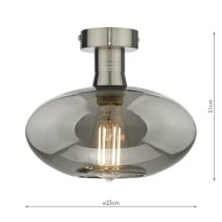 The Emerson flush ceiling light is a perfect example of the refined industrial style, inspired by industrial lighting using a rich pallet of materials and finishes. Featuring a wonderfully heavy machined lamp holder with an antique chrome finish. Finished with a highly reflective smoked glass shade.