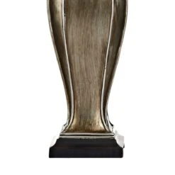 The EMLYN Table Lamp features a distressed silver and gold base on a black plinth and comes complete with a faux silk gold bound edge shade which has a harp frame and finial.