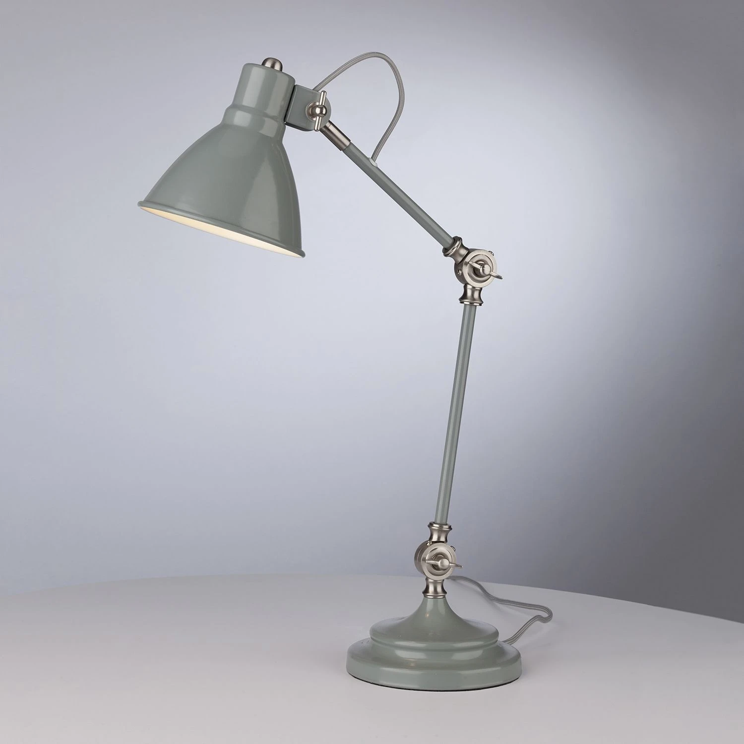 The Eunice task lamp features an adjustable head and arm that can be altered at the base and middle, allowing you to adapt the angle of the lamp and direct the light.