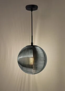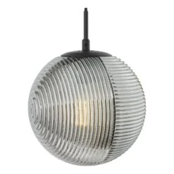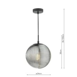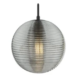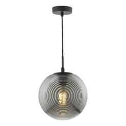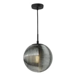The Evander Single Pendant Smoked Ribbed Glass from dar lighting offers a stylish and contemporary lighting solution for your home. The Evander single pendant features a matt black frame with a stunning smoked glass shade which has a linear ribbing on one side and a circular ribbing on the other. The Evander single pendant features a height adjustable braided black cable allowing you to adjust the height to your requirements. The Evander single pendant takes a single E27 (ES) bulb (not supplied), We recommend using LED filament lamps from our range of LED bulbs