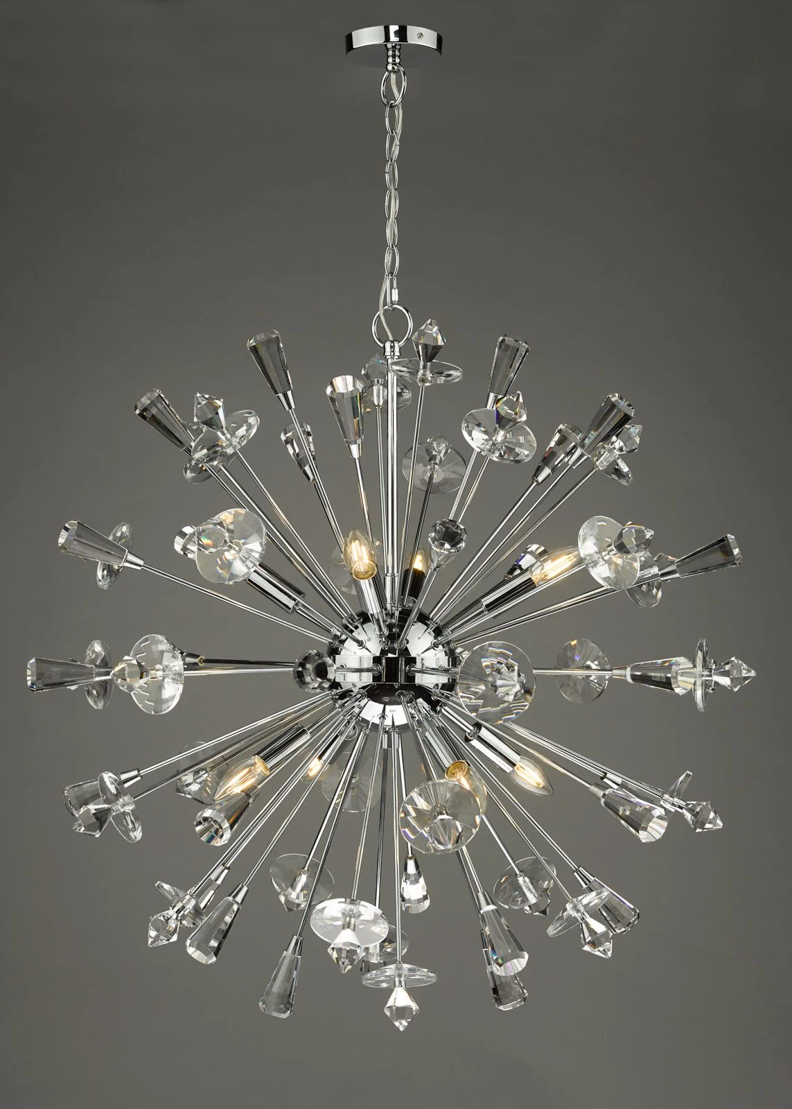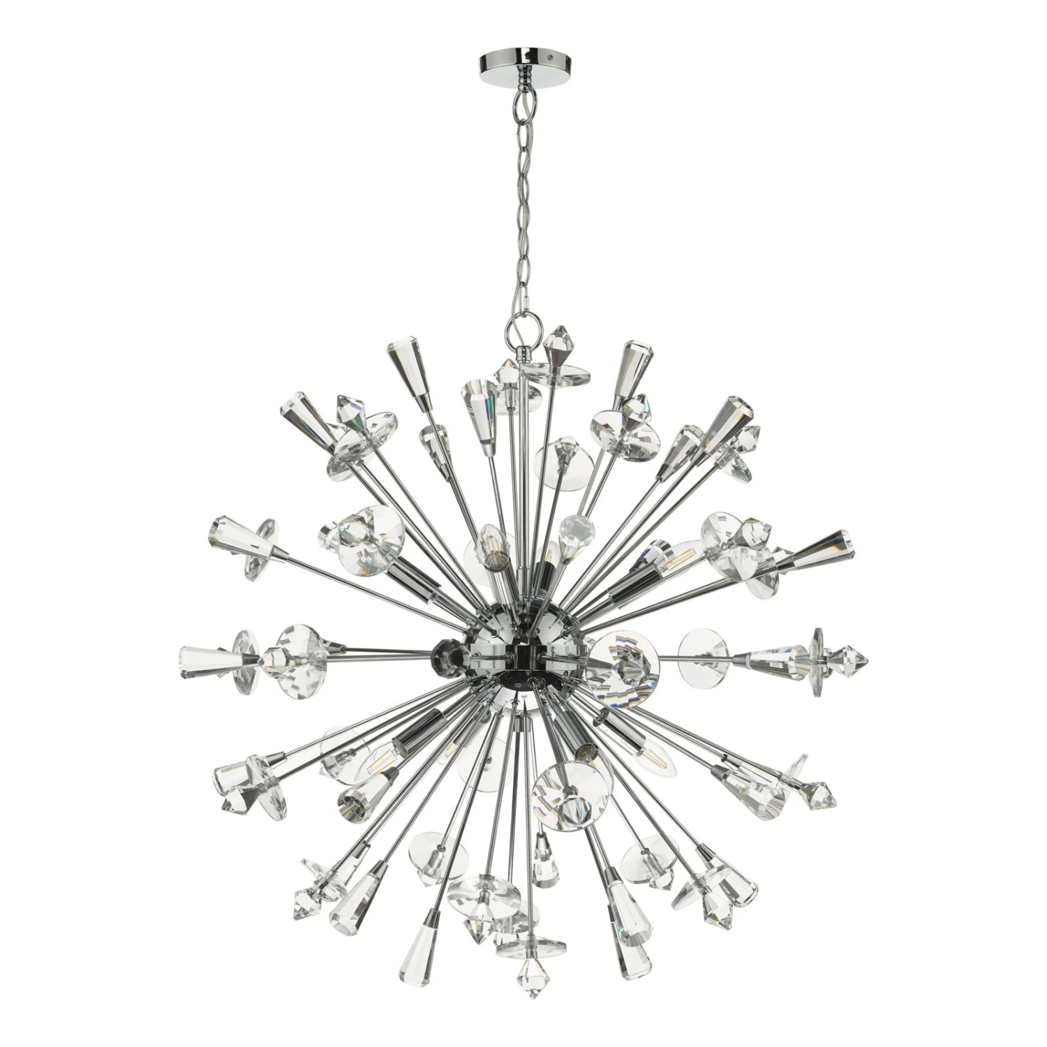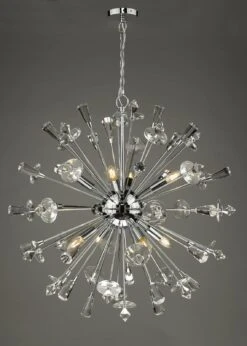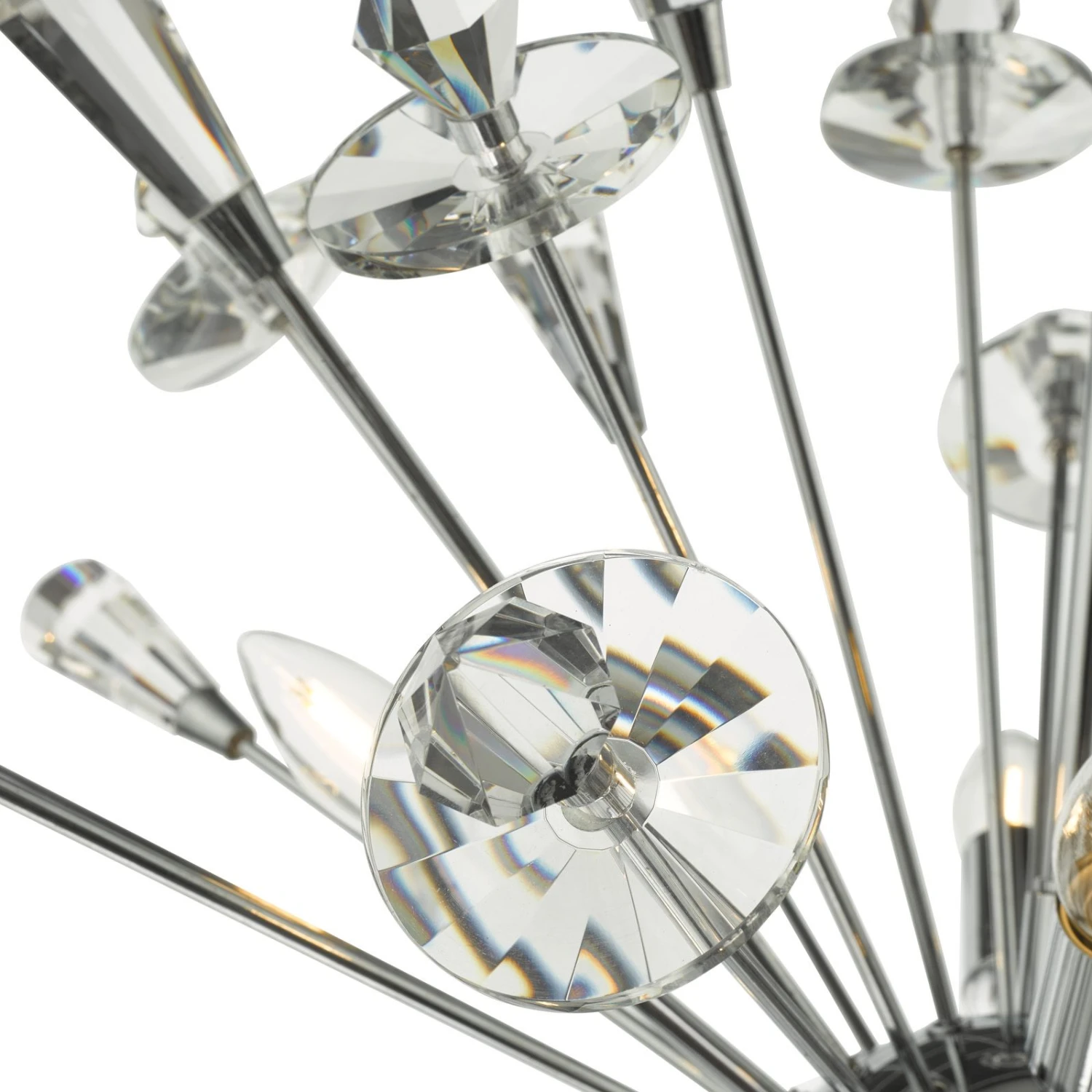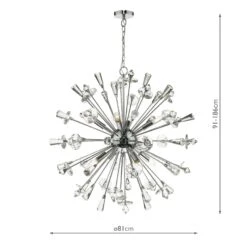 The Exodus 8 light pendant ceiling light in polished nickel and high quality crystal. 1m of chain and clear cable is included which can be adjusted on installation depending on how low your ceiling is or how high you’d like to hang the ceiling light. Crystal appears to explode from the centre of this incredible statement light