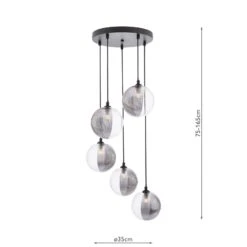 The Federico 5 Light Cluster Pendant Matt Black & Smoked/Clear Ribbed Glass is part of a collection of contemporary lighting with a focus on clean lines and minimal design. The Federico cluster pendant features a smoked/clear ribbed glass shade which is slightly asymmetrical, with one side smoked and the other clear. The Federico cluster pendant looks great over a dining table or can be used as a stairwell cluster.