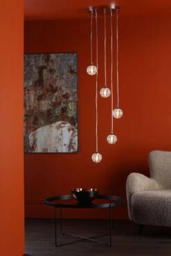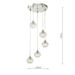 The Federico spiral cluster pendant is a minimal design in polished chrome with 5 spiralling clear ribbed glass shades. We find it’s minimalism so versatile and refreshing, it’s just at home as a stairwell light as it is lighting a dining table or over a bed. The black fabric cable can be adjusted on installation but if you want to go very short you will need the help of an electrician.