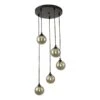 The Federico spiral cluster pendant is a minimal design in polished chrome with 5 spiralling opal glass shades. We find it’s minimalism so versatile and refreshing, it’s just at home as a stairwell light as it is lighting a dining table or over a bed. The black fabric cable can be adjusted on installation but if you want to go very short you will need the help of an electrician.