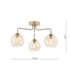 The Feya 3 Light Semi-Flush Antique Bronze & Champagne Dimpled Glass is a beautiful semi-flush fitting with organic looking champagne open glass shades. The simple antique bronze frame suits low ceiling rooms and allows the glass to really shine. The Feya semi-flush is suitable for an entryway, dining room or anywhere a little style is needed.