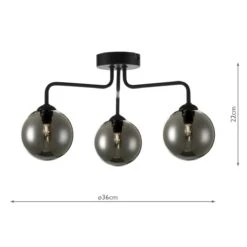 The FEYA 3 light semi flush ceiling light in matt black and smoked glass. A simple semi flush ceiling light designed in a modernist style with simple arms yet elegant arms. The height of the Feya ceiling light make it easy to place in most modern rooms where the ceiling height is often lower