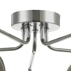 The FEYA 5 light semi flush ceiling light in polished chrome and smoked glass. A simple semi flush ceiling light designed in a modernist style with simple arms yet elegant arms. The height of the Feya ceiling light make it easy to place in most modern rooms where the ceiling height is often lower