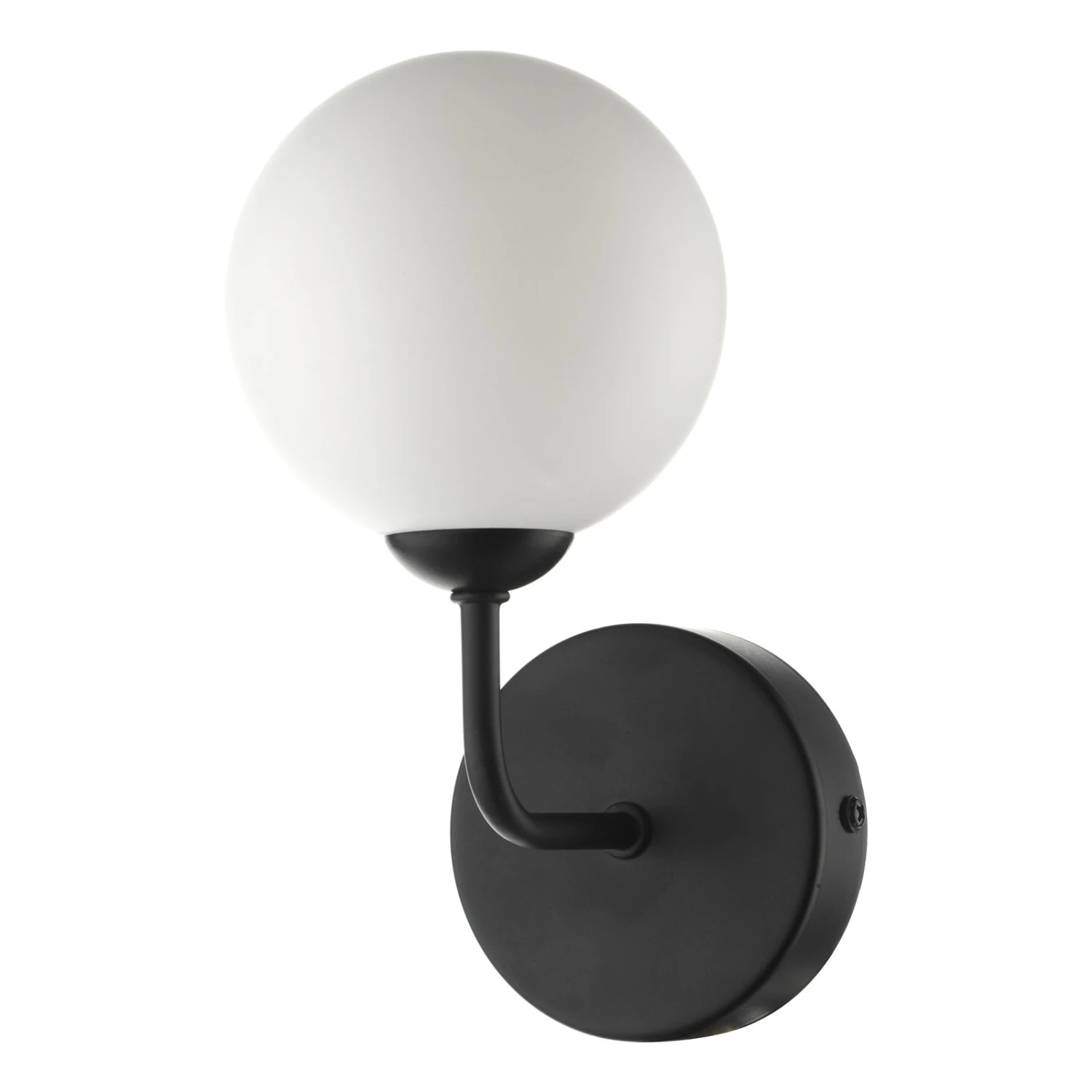 The FEYA wall light in matt black and opal glass. A simple wall light that looks at home in most modern interiors.