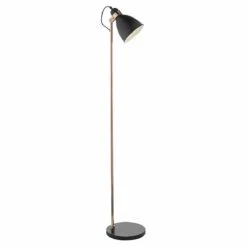 The FREDERICK is a neat directional floor lamp shown in black with polished copper metal work and matching braided cable. Teamed with the table or wall lamp, this range adds an instant style fix to any interior.